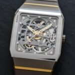 The skeletonised motor barrel on the dial side features hand-polished, bevelled spokes, complemented by a black-polished finger bridge, while the rear reveals a three-quarter bridge adorned with Geneva stripes and circular graining, finished with 60° hand-polished bevels that underscore the watch’s artisanal pedigree.
