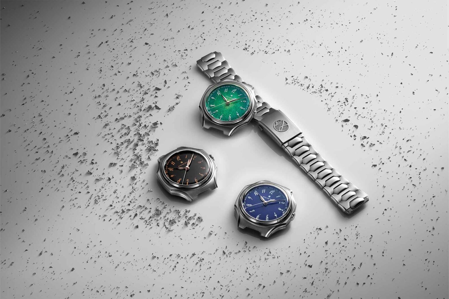 They also haven’t skimped on the dials. There are three dial variants, all grand feu enamel, introduced at launch. Yōu is a “launch edition” limited to 30 pieces, and features a green fume colorway with an intricate hand hammered texture. Mò is a permanent part of the collection in obsidian black grand feu enamel, and Yuān is also a permanent collection piece in midnight blue grand feu enamel. All three originate from the workshop of Kong Lingjun, a Chinese enamel artist. They look wonderful in person, with the launch edition being a personal favorite. As always with Atelier Wen, they’re paying attention to the details. The Breguet style Arabic numerals have a nice dimensionality to them, particularly on the black dial, where the gilt/black contrast is really apparent.
