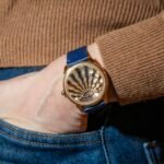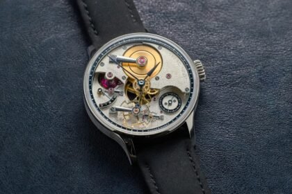 For the GMT version of the Baltic Aquascaphe, the brand replaced the base model’s 60-minute dive-scale bezel with a more travel-friendly, bidirectional (and bicolor) 24-hour bezel, which can be used in conjunction with a central arrow-tipped hand to read the time in a second time zone. The dive-watch DNA of the Aquascaphe series is clearly present, with the dial sporting geometric hour markers, plentiful lume on the markers and hands, and a 100-meter water resistance (half of the diving model’s 200-meter rating, but still substantial). The Arabic “12” joins the “bubble” hour indexes and a pair of inverted triangles at 3 and 9 o’clock on this one’s dial, along with a date indicator at 6 o’clock. (A date calendar, while not considered essential for a dive watch, is a useful feature in a travel watch like this one, which is meant to be worn across time zones and the International Date Line.) Adding to the value proposition is Baltic’s use of a self-winding, Swiss-made Soprod movement inside the brushed steel case rather than the Japanese-made Miyota.