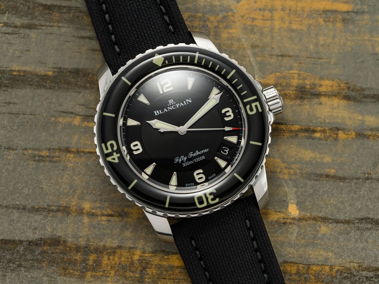 Blancpain, founded in the Swiss village of Villeret in 1735, has been making timepieces for almost 300 years, but perhaps its most impactful contribution to wristwatch history was relatively recent — and began its heralded life as a military tool rather than a luxury item. In 1953, Blancpain was headed by Jean-Jacques Fiechter, an avid diving enthusiast who had long wanted to develop a watch that would be ideal for his hobby. Fiechter worked with Captain Robert Maloubier, a French naval officer, to design a reliable, mission-ready timepiece that Maloubier’s elite combat diving team could wear. Here we will take a look at the Blancpain Fifty Fathoms Bathyscaphe, a more everyday take on the iconic diver.