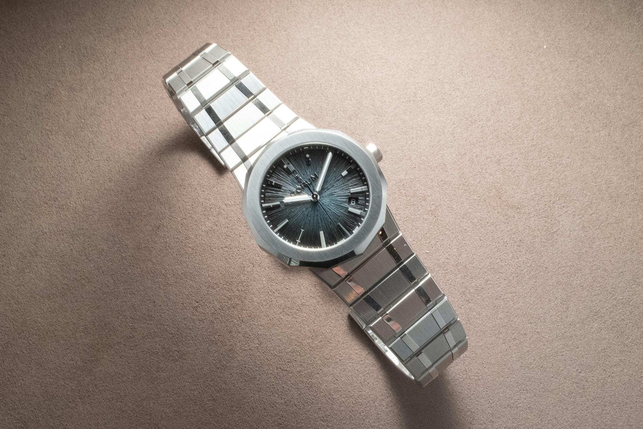 The number of SKUs will drop from about 250 previously to just 21 this year, according to the CEO. There will be 11 new Admiral models in two sizes, five in 36 millimeters and six in 39 millimeters, using case materials from steel to titanium and gold. The Admiral watches will start at about CHF 10,000 up to about CHF 33,000.