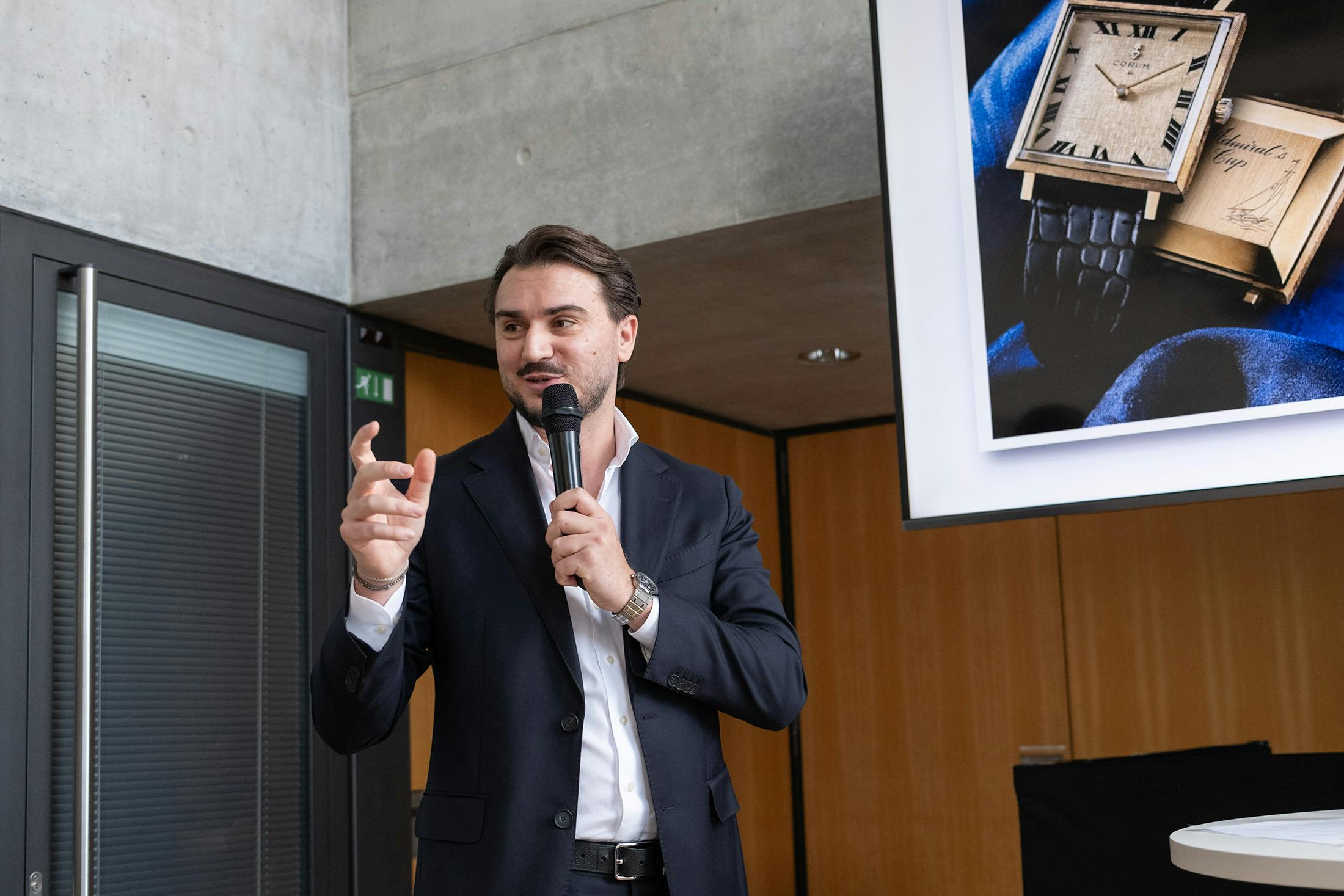 Corum CEO and Chairman, Haso Mehmedovic at the brand relaunch event at company headquarters in La Chaux-de-Fonds.