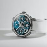 This Citizen Promaster Nighthawk reference, which combines a brushed-and-polished stainless steel case with a black IP-coated bezel, adds another layer of mission-ready, military character, mounted on a robust olive-green leather strap. In most other details it resembles the Sikorsky and Blue Angels models above: its 42-mm case is water-resistant to 200 meters and its black dial is packed with scales in contrasting white type that are of particular use to aviators and navigators, including the circular slide rule printed on the rotating bezel. Two luminous central hands display the current time, while an airplane-tipped smaller hand shows the time in another time zone on a 24-hour scale; the date appears in a rectangular window at 3 o’clock. The movement inside the case, Citizen’s quartz-powered Caliber B877, runs on the Japanese brand’s proprietary Eco-Drive technology, enabling constant recharging of power via any light source. Citizen hasn’t launched a new Nighthawk in a while, but I have it on good authority that you may see some new ones rolling down the runway soon. You can learn more at citizenwatch.com
