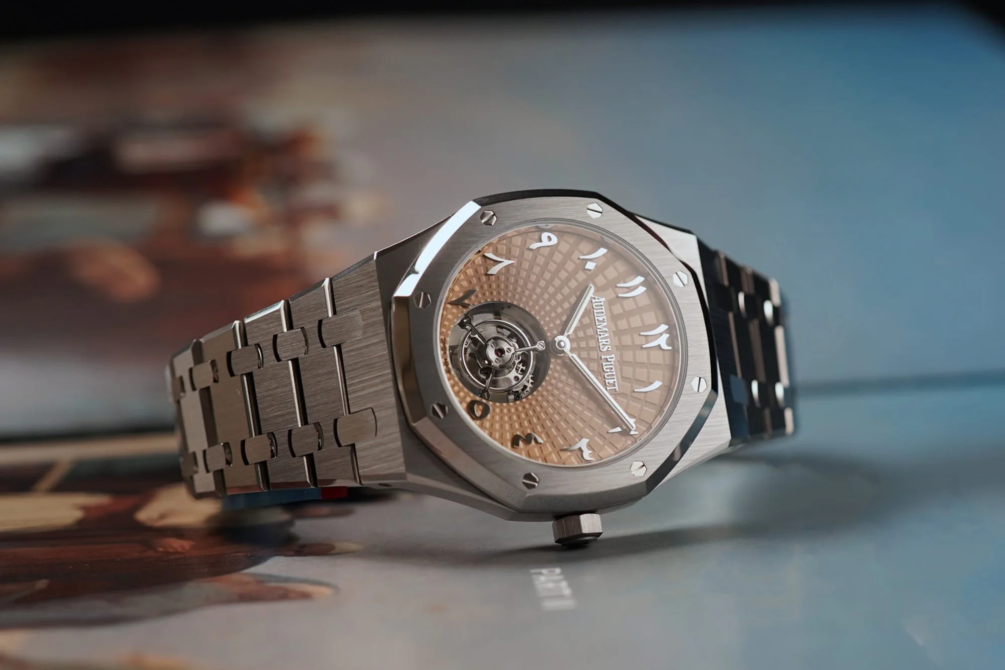 Audemars Piguet Royal Oak Perpetual Calendar Ultra-Thin Unique Piece Arabic Markers ref. 26586XT.OO.1240XT.99. It was a cool release, with the fumé desert-themed dial. But maybe the indices could have been even cooler. Photo courtesy Audemars Piguet.
