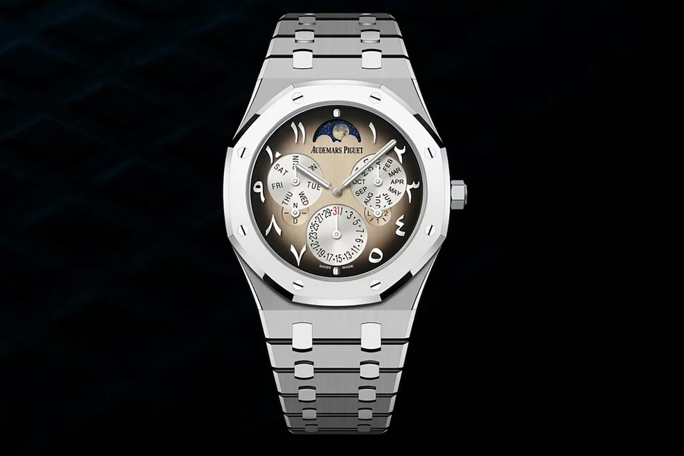 Audemars Piguet Royal Oak Perpetual Calendar Ultra-Thin Unique Piece Arabic Markers ref. 26586XT.OO.1240XT.99. It was a cool release, with the fumé desert-themed dial. But maybe the indices could have been even cooler. Photo courtesy Audemars Piguet.