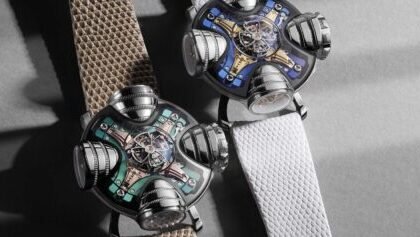 The two versions, Gravity Black and Black Resin, differ mainly in their dial design. While the Gravity Black focuses on a technical monochrome appearance, the Black Resin introduces golden accents.