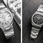 The options in the Cornes de Vache series are Blue Sector (blue with polished steel and steel-colored details), Salmon Sector (finely grained salmon-colored dial with black PVD details), and White Sector (sandblasted, stamped white dial with steel-colored details and blued hands). Inside these watches, visible behind a clear sapphire caseback window, is a La Joux-Perret G100 movement, boasting a 68-hour power reserve and a host of high-horology finishing, including Geneva stripes, blued screws, and a tungsten rotor with galvanized palladium coating and gold engravings. All in all, most would agree it’s quite a value at the MSRP of CHF 1,250 or around $1,562.