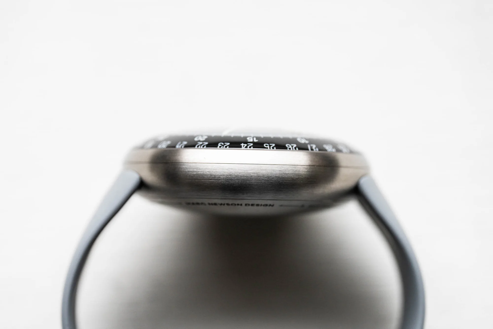 The new Type 3 MN is also large, though it is brought down to a more reasonable yet still Megapode-like proportion. A grade 5 titanium case with a diameter of 45mm and a height of 15mm might seem imposing, but the lugless round design means the strap is inset into the ends of the case and positioned so the sides start already downturned. The clean silhouette acts as a complementary base to quite a busy dial, retaining all of the visual information of the Type 3, but executed in the Newson way.