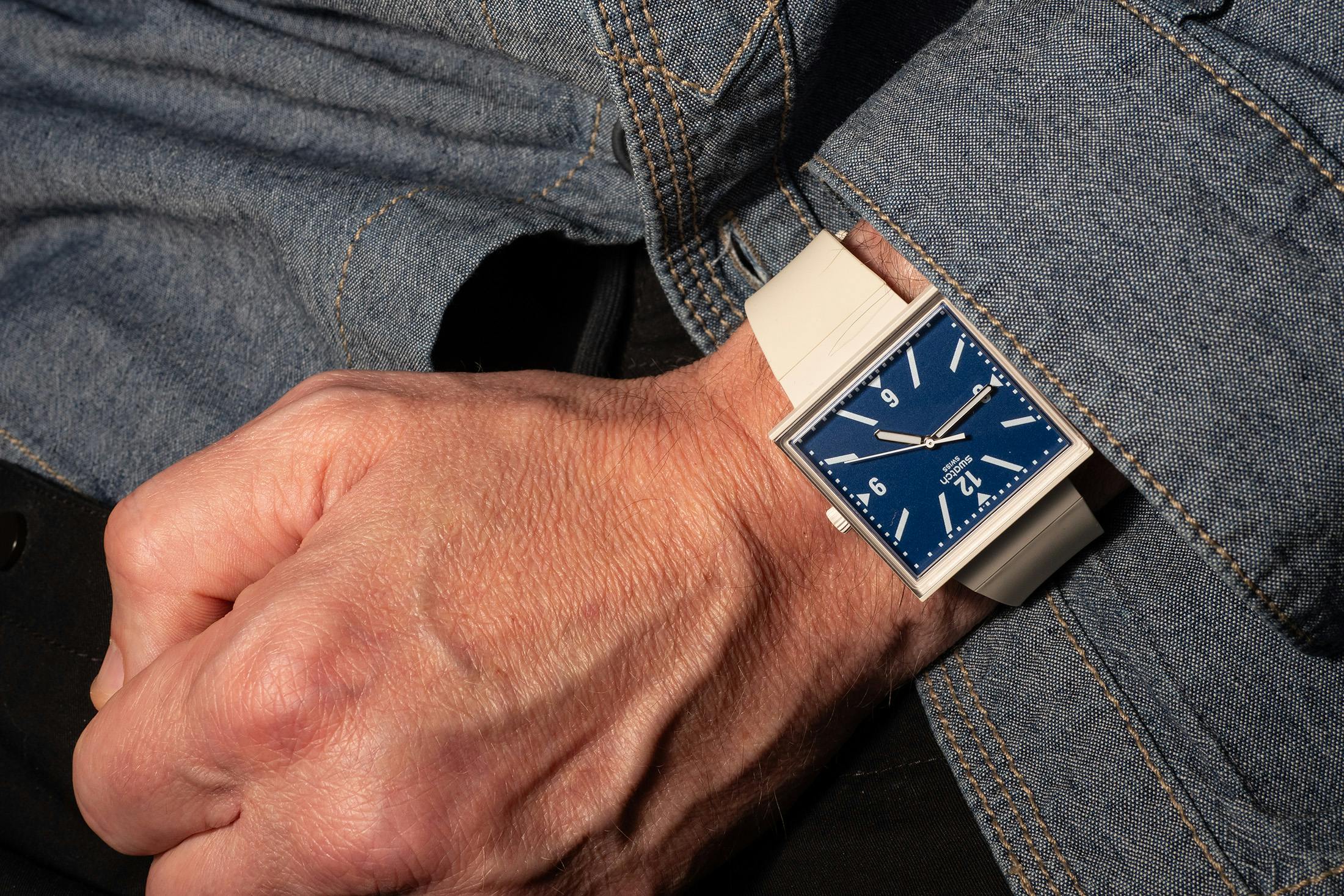First up, let’s be clear, you can only buy this watch in Switzerland. If you live in Japan, France, or—most certainly—the U.S., you’re out of luck unless you travel to Switzerland to get one. When we visited the flagship Swatch boutique on Rue du Marché in Geneva, we picked one up ourselves. It wasn’t on display alongside the MoonSwatches, Blancpain × Swatch Fifty Fathoms, and other core models; we had to ask for it specifically, and a sales associate disappeared into the back to retrieve one.