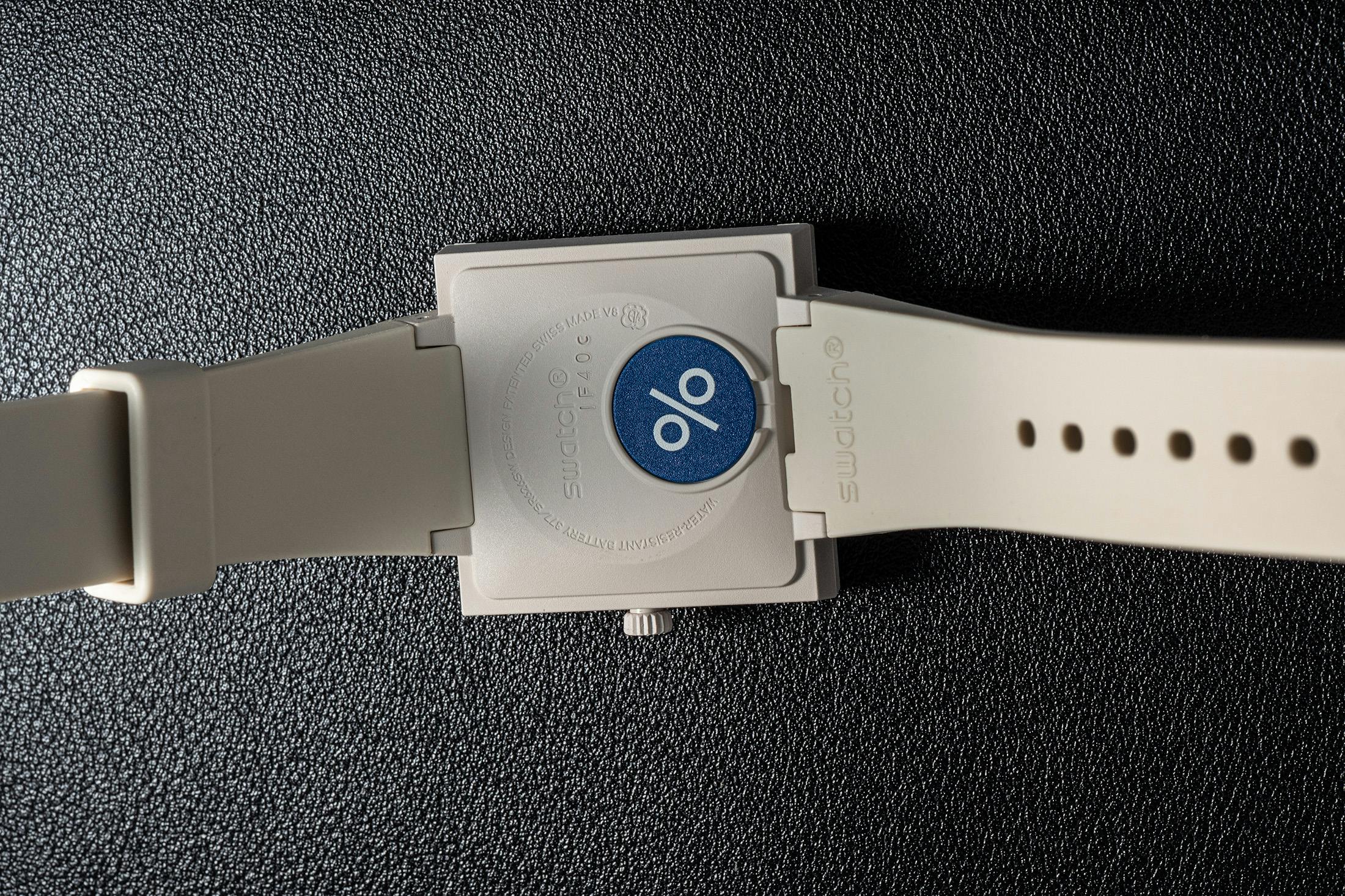 The only other nod to the tariffs is found on the back of the watch with the battery cover. While the original What If? models use the plate to display dials of original Swatch models, the What If…Tariffs? has a big blue percentage sign that reminds one of the ever-shifting rates that importers in the U.S. face, depending on their country of origin. At the moment, U.S. importers of Swiss-made watches are facing a 39% rate on the value of the goods, the highest of any developed Western nation. Meanwhile, products from the European Union and Japan are facing a 15% levy, while products from the U.K. are subject to a 10% tariff on the value of products imported.