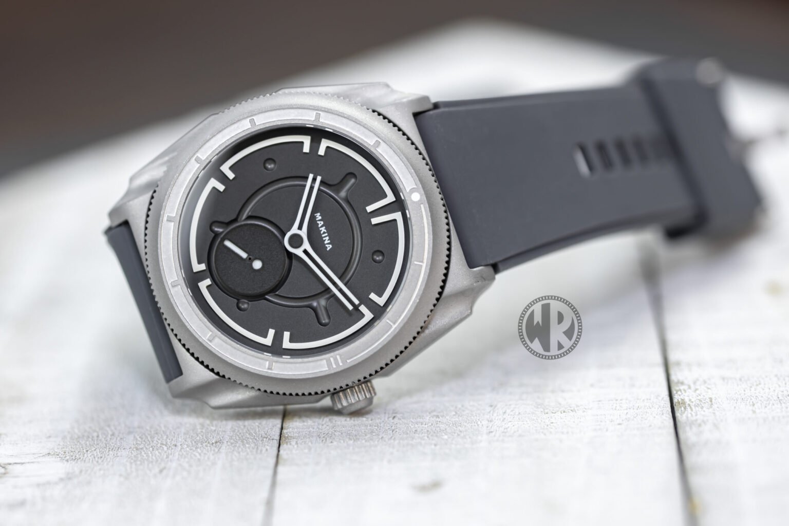 - At this time, the Makina Azazel is only availbe in one color, this dark grey dial with a matching grey silicone strap. The strap is notched, so it’s 22mm at the lugs and flares out to 24mm, which is quite large for a watch that is only 40mm, yet I find it works with the design of this watch. On paper, it is not a large watch, yet it definitely wears larger on the wrist.
