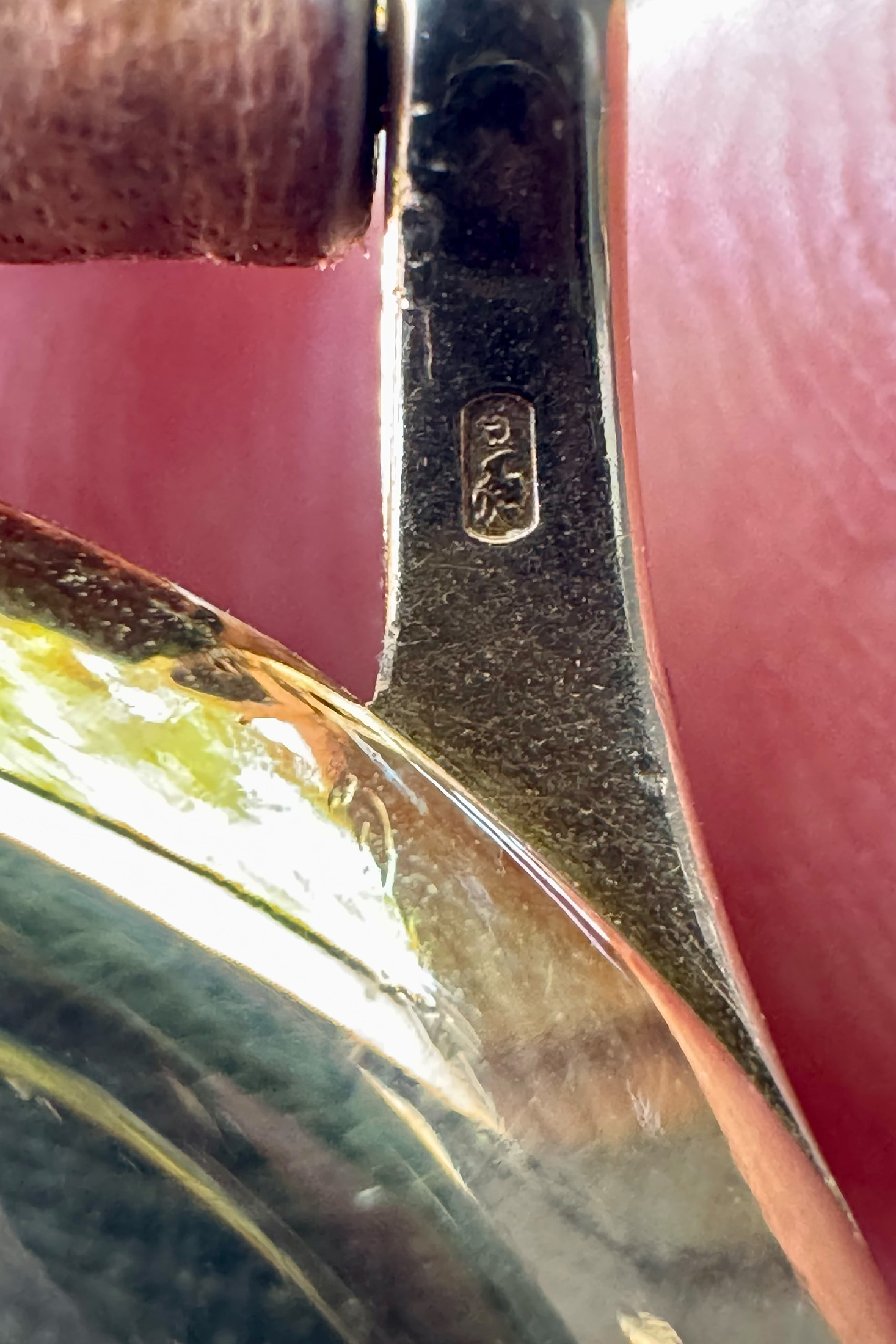 The overall condition of the subject example’s case is quite strong, as evidenced by the deep engravings, symmetrical and thick lugs, and magenta hue from oxidation evident on various aspects. It’s easy to identify when the lugs have been over-polished on this reference, and it’s often difficult to find an example that has maintained its original proportions and relatively thick lugs without some form of later case restoration work. One often sees examples that have had casework performed to accomplish one or several of the following objectives: to sharpen transitions, to add metal content to thicken lugs, or to re-brush the case sides (which usually results in the removal of portions of hallmarks).