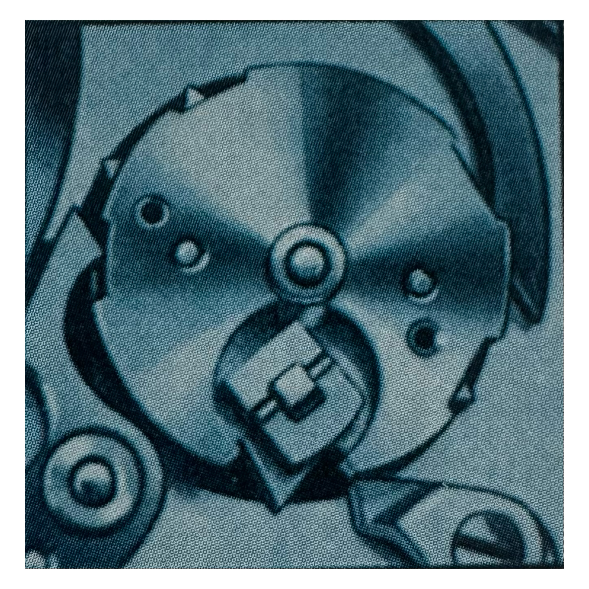 Light reflection showing detail of blue champlevé-enameled moon phase disc.