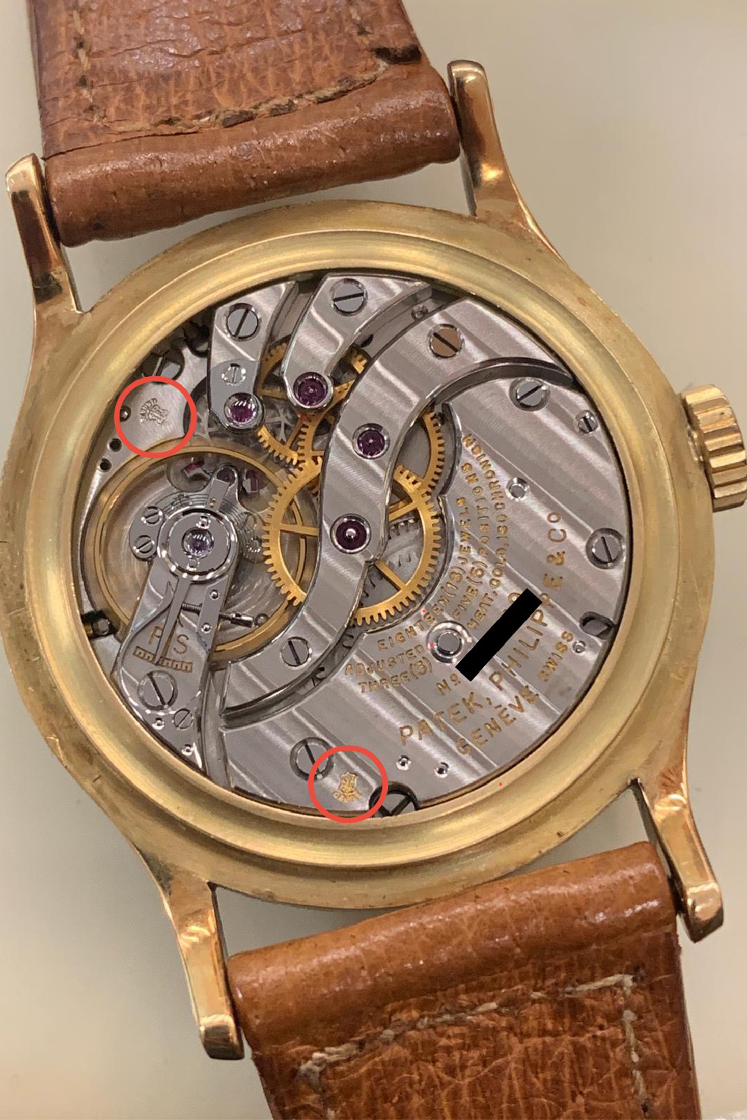 An example of corresponding Roman numeral marks visible on the inner case portion used for original parts matching by a watchmaker. Image courtesy of Christie’s.