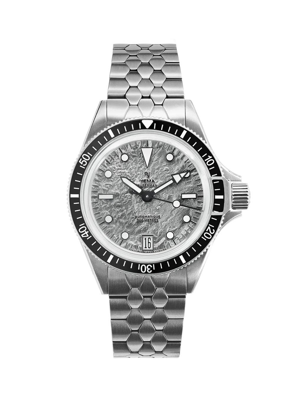 So it should come as no surprise that it also serves as a purely aesthetic inspiration, which brings us to the Yema Superman Titanium MoonTide, a new limited edition from the French brand clad in our favorite lightweight metal and designed to conjure images of the lunar surface. The Superman, for anyone who might need a refresher, is Yema’s core dive watch, originally launched in the 1960s heyday of recreational diving. It features a unique bezel locking mechanism that is tied to the screw down crown. It’s a bit anachronistic, but has a certain charm to it.