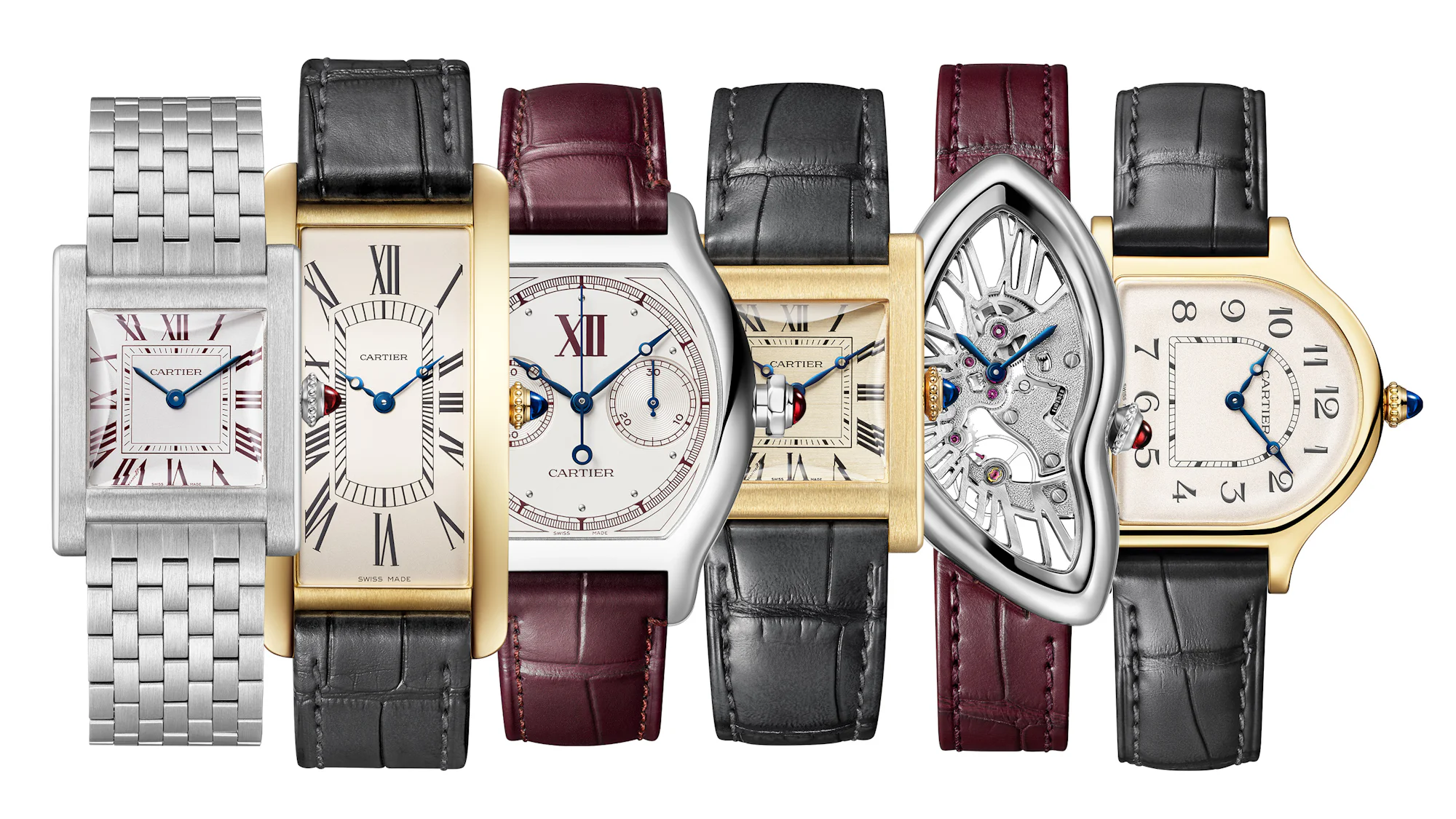 Model: Crash Squelette, Tortue Chronographe Monopoussoir, Tank Normale, Cloche de Cartier, Tank Cintrée