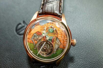 A collection of four different colorways of the 44mm by 15.3mm Meca-10-powered Big Bang models that I can only describe as “Paintball Pollock” vibes, Hublot takes its in-house manually wound caliber and encases it in composite concrete cases painted by hand in splattered, UV-reactive paint. The “Magic City” in purple and green that reminds me of everyone’s favorite dinosaur, “Vice” goes all hot pink with a splash of blue, the “Big Water” comes in bright blue with greys thrown in, and my favorite of the four is probably the yellow, orange, and green “Sunshine” edition with subtle (if you can even use that word here) bits of pink.