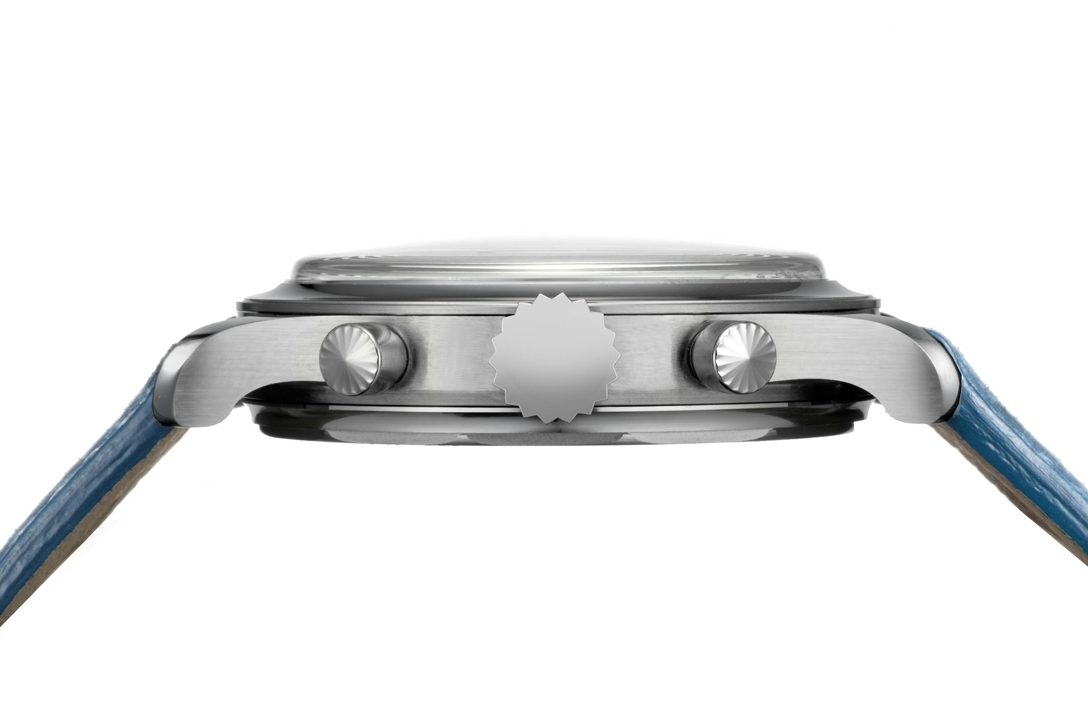 The German Silver dial is reminiscent of the Type1D and Type1E, with a subsidiary seconds now at 9 o’clock (where I am used to it, frankly). The 9 ligne movement runs at 3Hz, with a power reserve of 38 hours and 19 jewels. This can be seen through the display caseback, which isn’t common for Hida watches. The case is only 31mm by 8.9mm thick with a 38.4mm lug-to-lug, screwback case, and 50 meters of water resistance. The dial has the same mix of hand and machine engraving as the chronograph. One feature I appreciate is the widely stanced lugs, 18mm apart, with 14mm taper to the buckle. The retail price is $23,100, and twenty pieces will be made over the next two years.