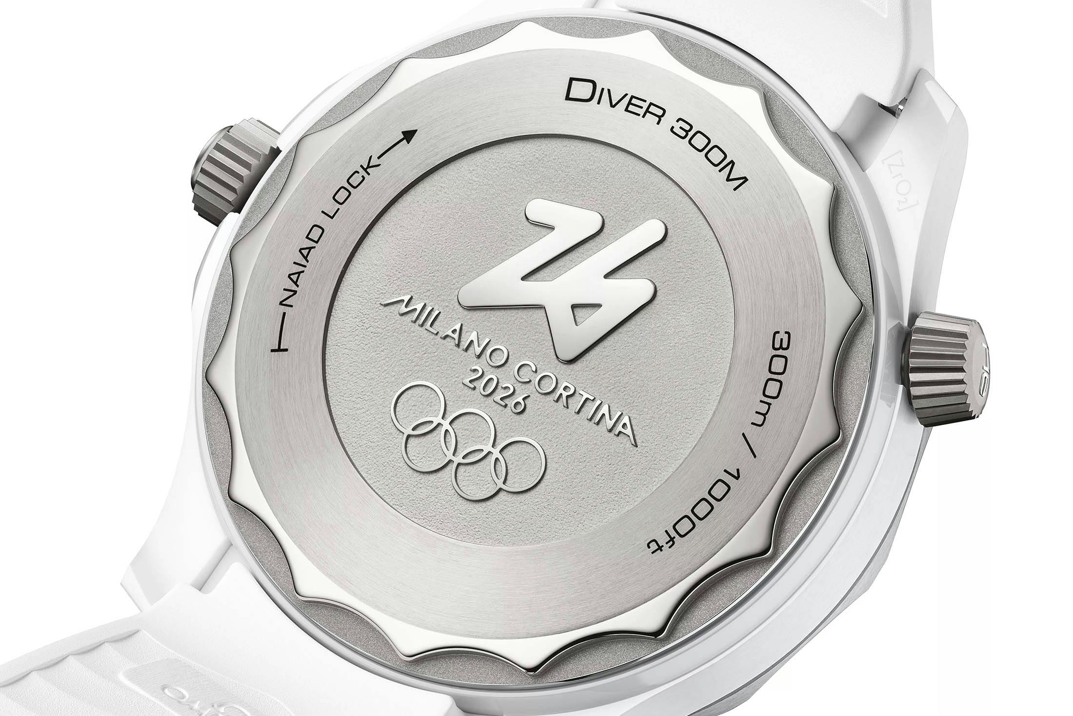 Delivered on a white rubber strap with a special presentation box, the Seamaster Diver 300M Milano Cortina Edition is priced at $10,500.