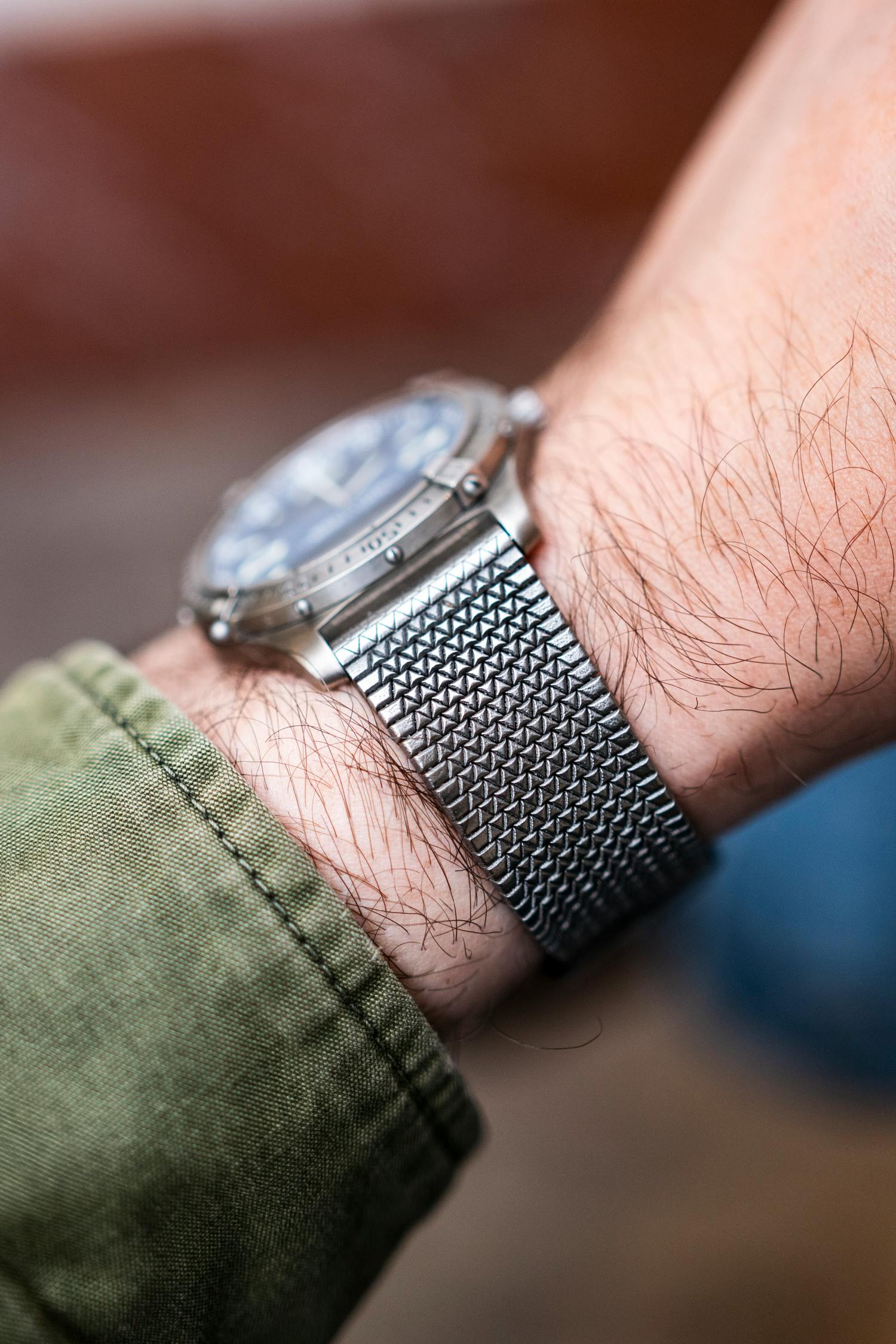 I immediately mounted the Polymesh on one of my all-time fave titanium watches (thankfully, with 20mm lugs), my Breitling Aerospace E65362. It’s a lovely match for the thin case of the quartz ana-digi Breitling. Sure, CHF 1,500 is a lot for a strap, arguably even more so when you put it on a watch of similar value, but it’s just so good (and it’s not a wild amount of cash for a high-quality bracelet). The pairing offered a unique and very cool experience.