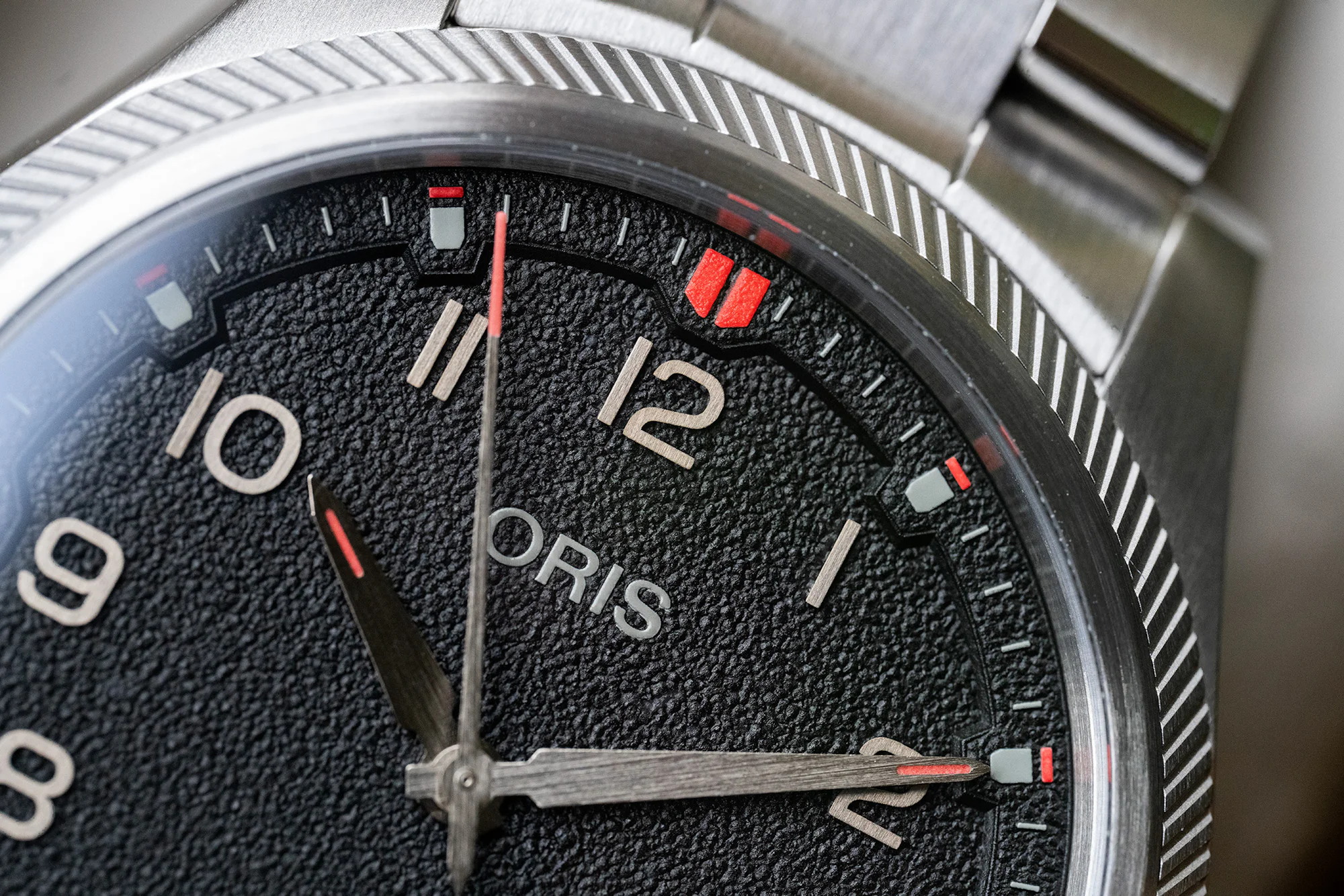 The other major update here is the 41-millimeter case, which appears crisper and sharper with polished and satin finishes. The liberal use of brushing gives the case and the watch a purposeful look, and indeed, with 100 meters of water resistance, the ProPilot Date could take you just about anywhere on your daily adventures. The notched bezel also has a slightly new look, which Oris says better recalls the design of modern jet engines. The crown’s knurling has been amped up to be even more pronounced than before and continues that theme on the brushed case sides.