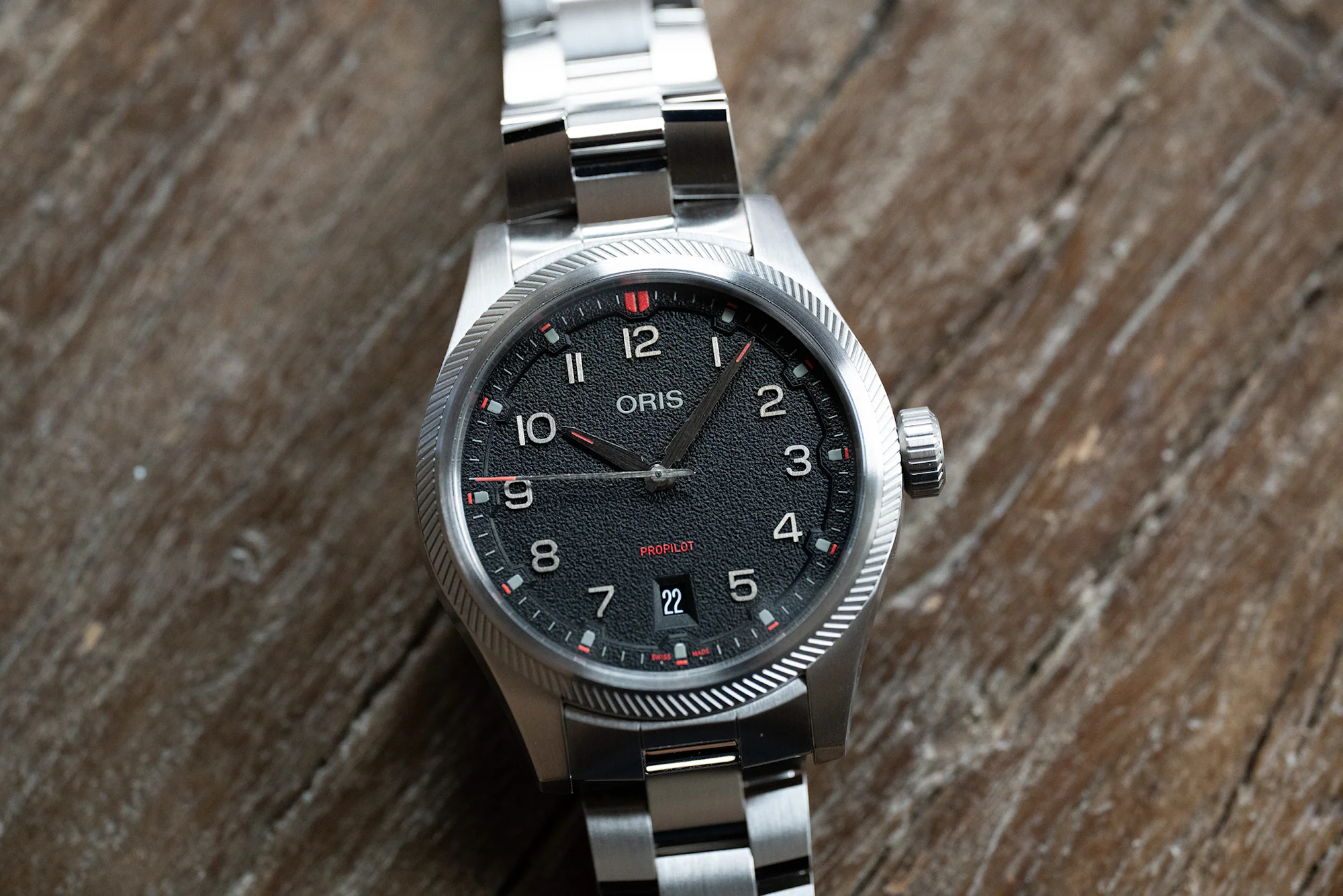 The ProPilot has been a staple of the Oris lineup since 2014, and it’s the modern take on its original aviation watch, the Big Crown Pointer Date, that launched way back in 1938. Today, the Swiss manufacturer from Hölstein is bringing important updates to the model’s evolution, with the new ProPilot Date that offers a bevy of cool new textured dials, better hands, and a redesigned, sharper case and bezel that Oris says make it even easier to wear. And here’s the best part, Oris has done all that while keeping the approachable price point that’s a core pillar of the brand.