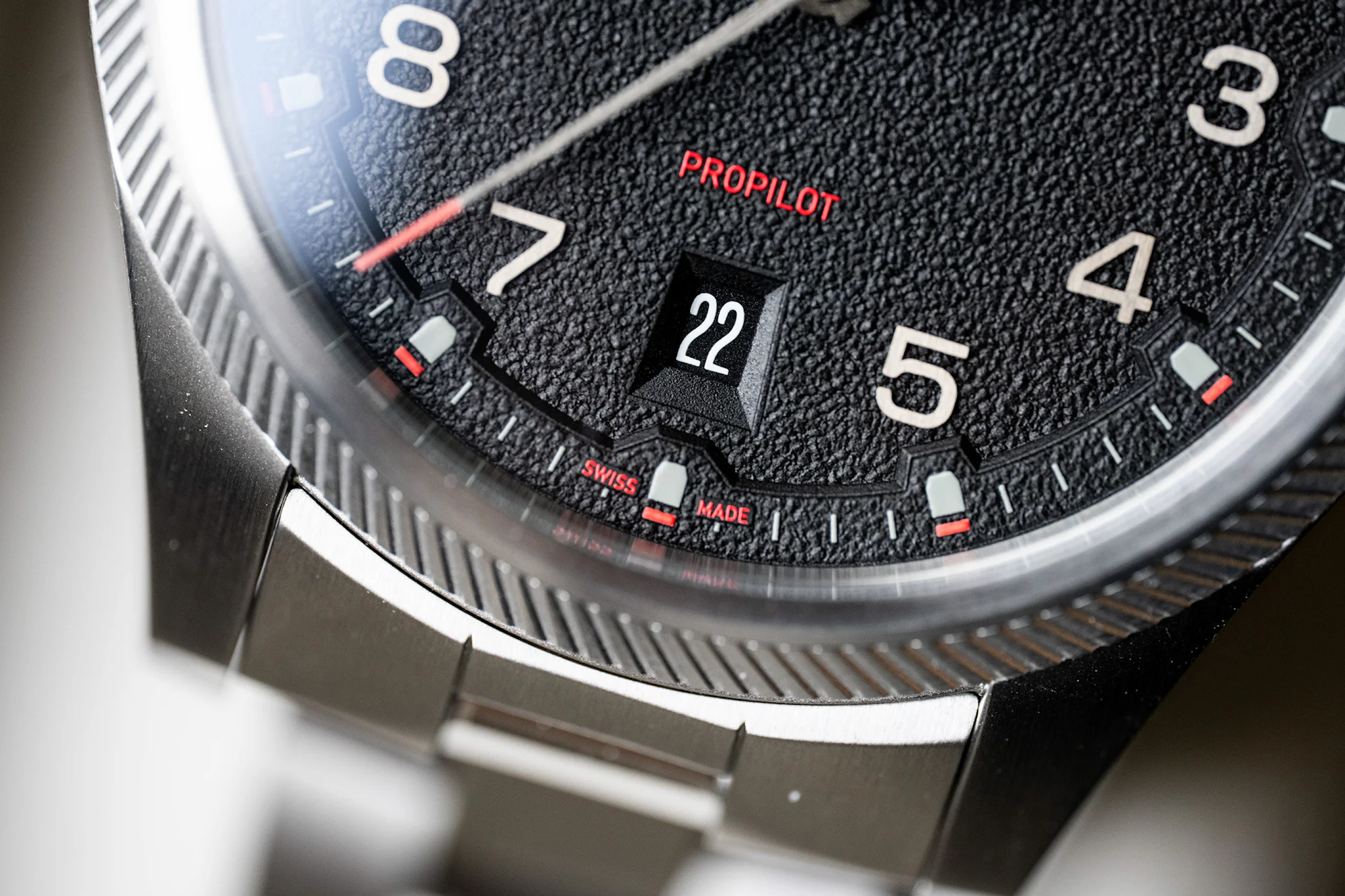 The ProPilot Date is available on a stainless steel bracelet with the brand’s adjustable ‘Lift’ clasp, featuring new chamfered and beveled work that matches the case. The watch is also available on a suede leather strap, matched to each of the new dial colors, that features the ‘Lift’ clasp. The 20 millimeters lug width is easy to deal with and should provide plenty of options if you want to swap out the strap. The lug-to-lug length is 49 millimeters, which means it’s pretty wearable and shouldn’t hang over the sides of most wrists.