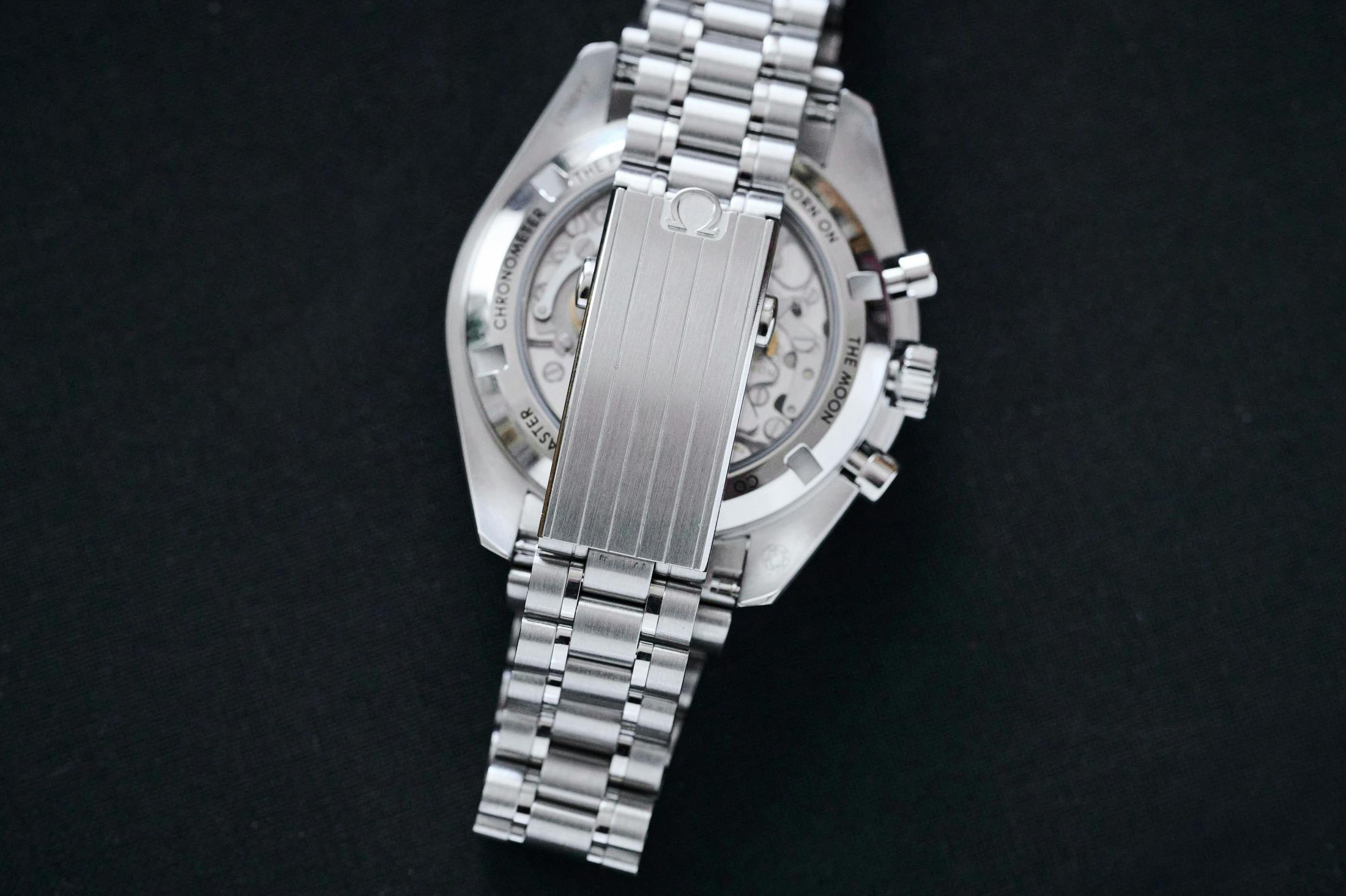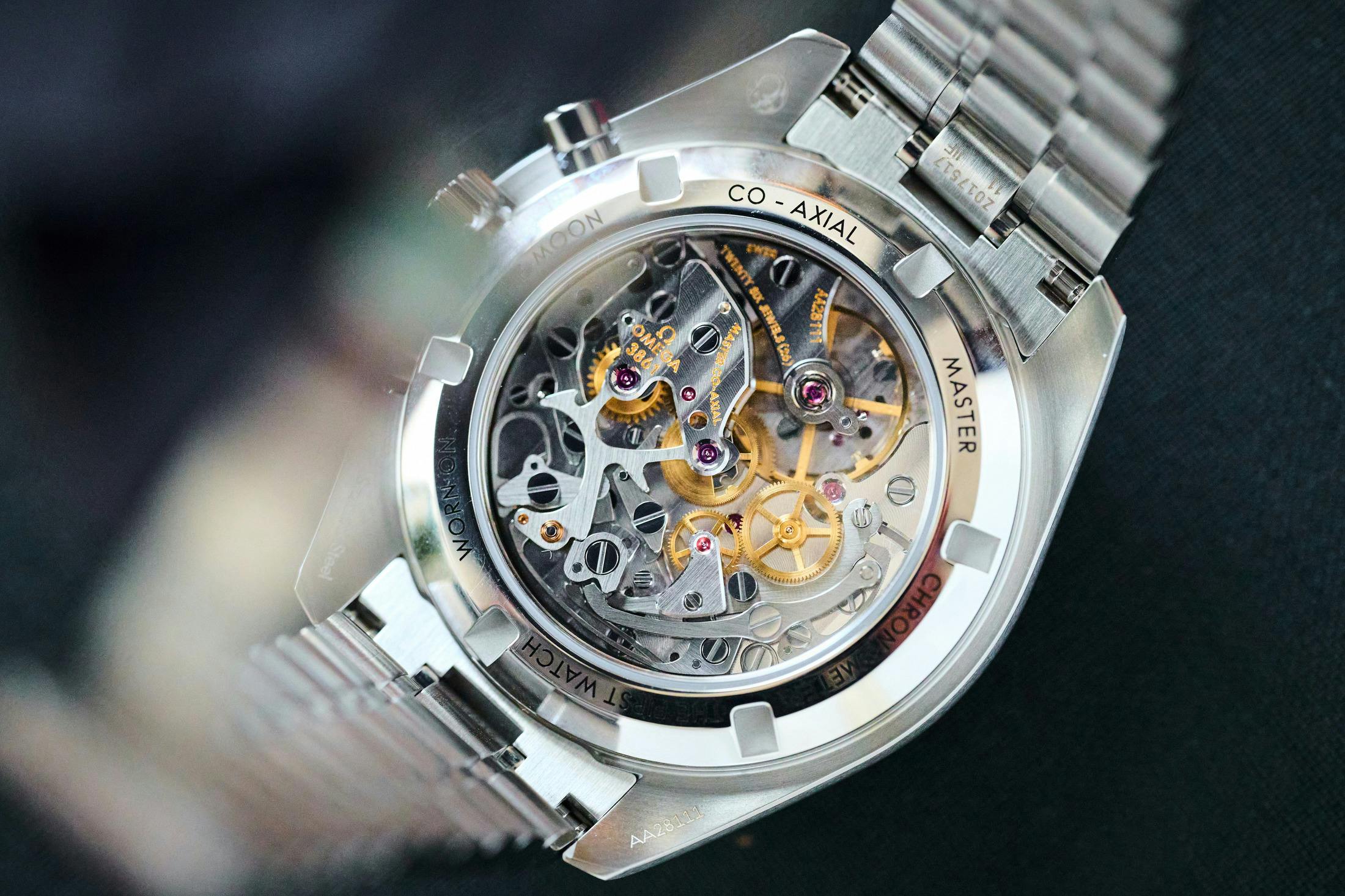 Inside the watch, unsurprisingly, lies the tried-and-true Calibre 3861 chronograph movement. Manually winding and cam-operated with a power reserve of 50 hours, the METAS-certified caliber features Omega’s free sprung balance as well as its co-axial escapement.