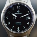 On the surrounding minute track, each numeral is accompanied by a blocky rectangular index, and each of these are separated by four intermittent white hash marks. The hour and minute hands are wide and sword-shaped, while the central seconds hand is lancet-style with a tapering point that brushes the edges of the minute track. The two main hands as well as the hour markers and numerals and the 12 o’clock triangle, are coated in Super-LumiNova that emits a sharp mint-green glow in the dark.