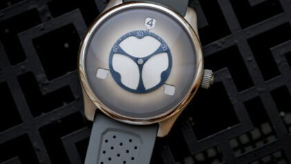 Paired with a robust saddle leather strap available in various colours, the MeisterSinger Archao in stainless steel is offered at a suggested retail price of €2,290. meistersinger.com