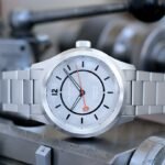 According to Oak & Oscar, the rehaut and main dial plate are both cut from aluminum using precision machinery, and the chapter ring and dial plate are riveted and bonded together in-house. A matte finish is applied using “50-micron silicon carbide blasting media,” and the dial’s markings are made with very high frequency lasers to create what the brand calls a “ghost script” that is said to either shine on the dial or completely vanish, depending on the light. The end result is a dial that has a spare, minimal quality to it that is unmistakably “Oak & Oscar” but clearly made to a higher standard than other watches in their catalog.