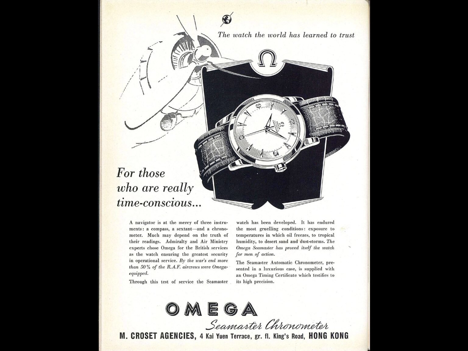 That transition began In 1955, when diver Gordan McLean wore the Seamaster for a record-breaking 62.5-meter dive off the Australian coast. In 1956, another Seamaster took a polar-route journey across the North Atlantic strapped to the hull of a Douglas DC6. Just one year later, in 1957 — four years after the Submariner debuted — came the first generation of the more familiar “Professional” version of the Seamaster, which was indisputably a true modern divers’ watch.