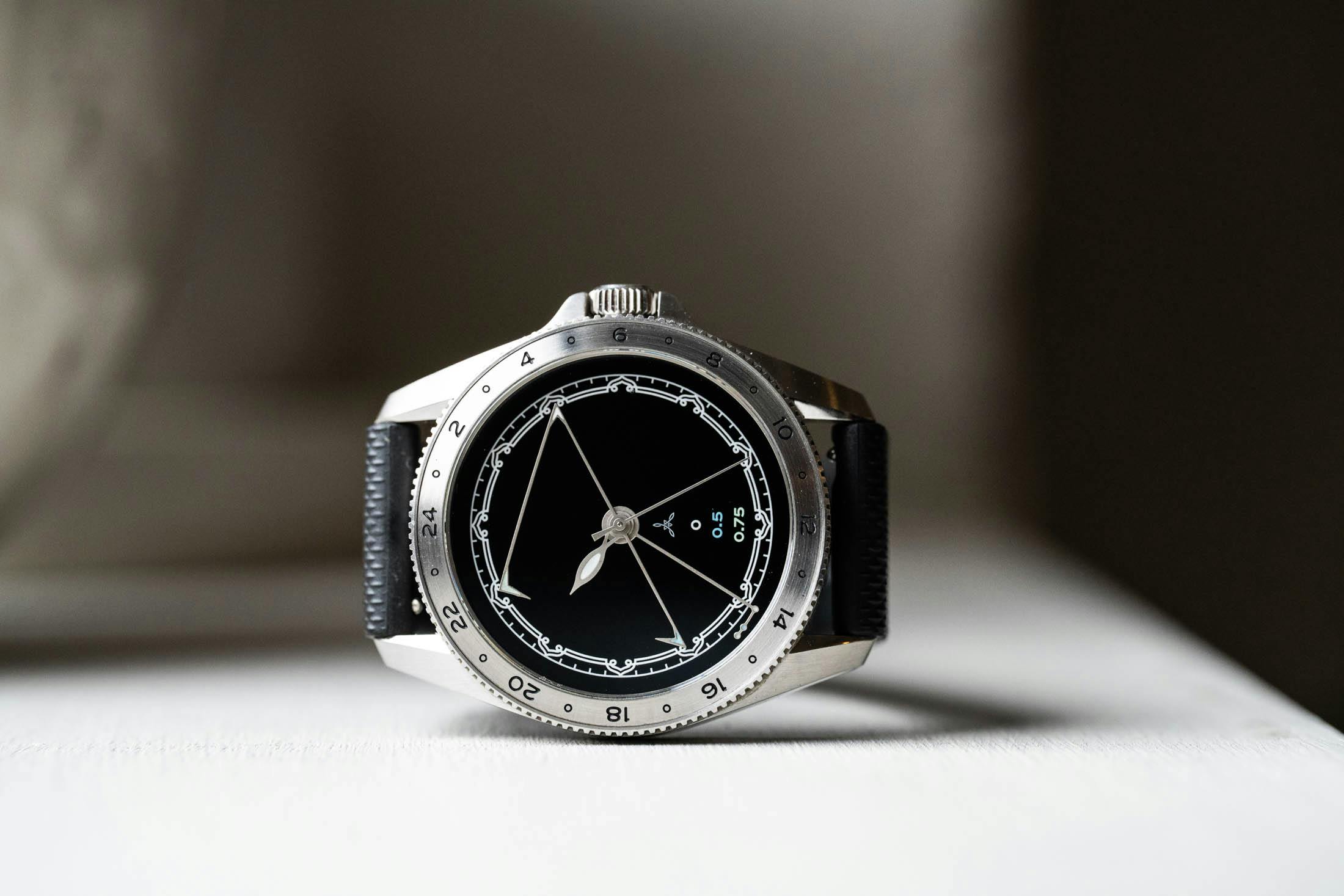 This is the Delta Type, the first watch to come from his new brand, Ardra Labs. Swiss-made and priced at $2,450, it’s a caller-style GMT watch with a unique design that can simultaneously indicate time in any two time zones on Earth, including those thirty- and forty-five-minute offsets. What’s most impressive is the simplicity of Krishnan’s solution here, powered by one of the most ubiquitous GMT movements on the market—the Sellita SW-330.