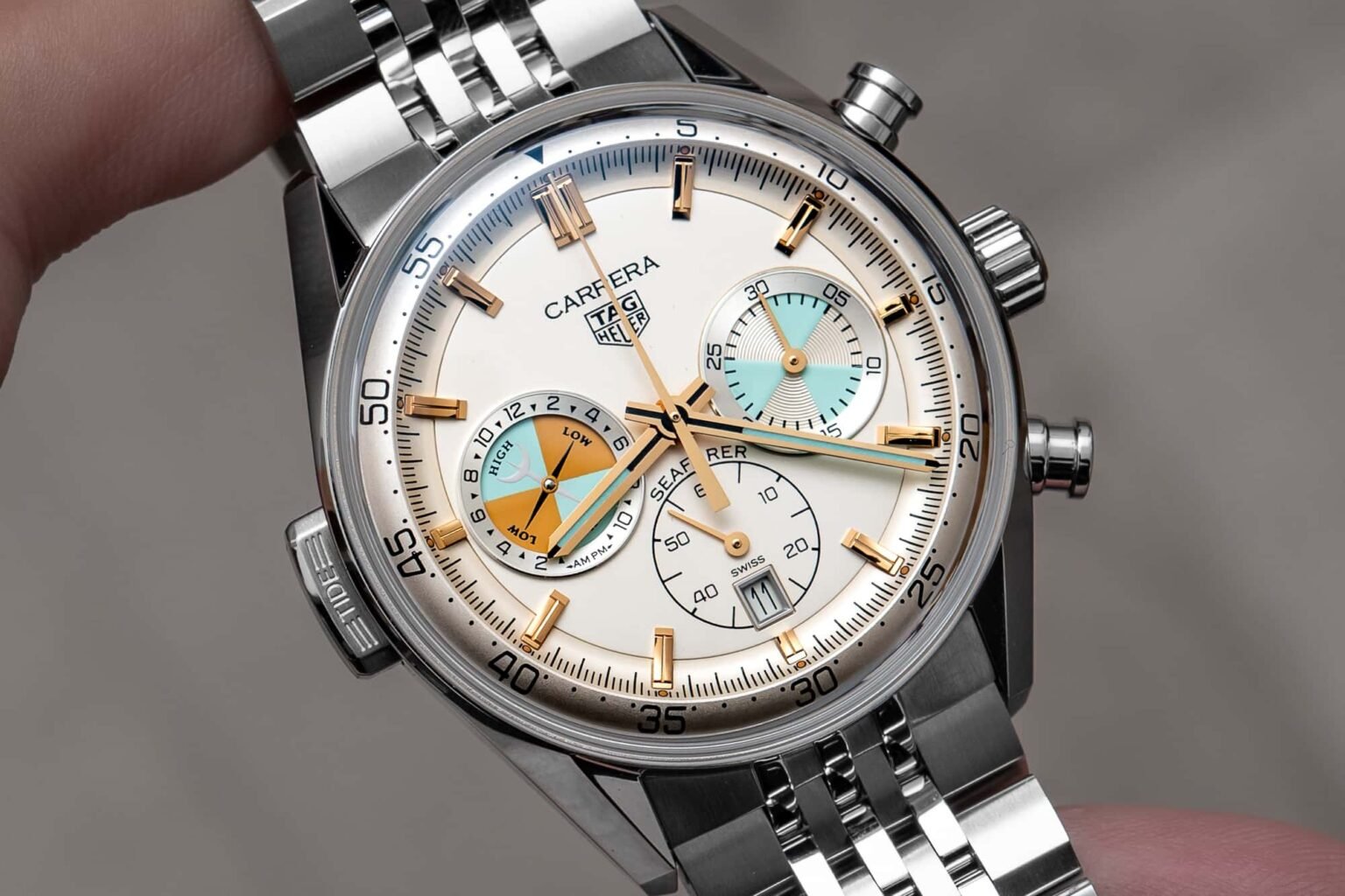 I wrote about this new Carrera Seafarer in-depth here but the TL;DR here is that this is TAG Heuer leaning into one of their most, for lack of a better word, “aesthetic” vintage designs for a maritime chronograph. Yes, a maritime chronograph which has a pusher on the left side of the case to adjust the tide complication which allows the wearer to align the “high” and low” tide quadrants with the time of day. Is it practical for any landlocked enthusiast? No, probably not. But it does look incredibly cool with that vintage Abercrombie & Fitch design and pastel shades of beige, teal, azure, and yellow. Price here is $8,800. – Bilal Khan