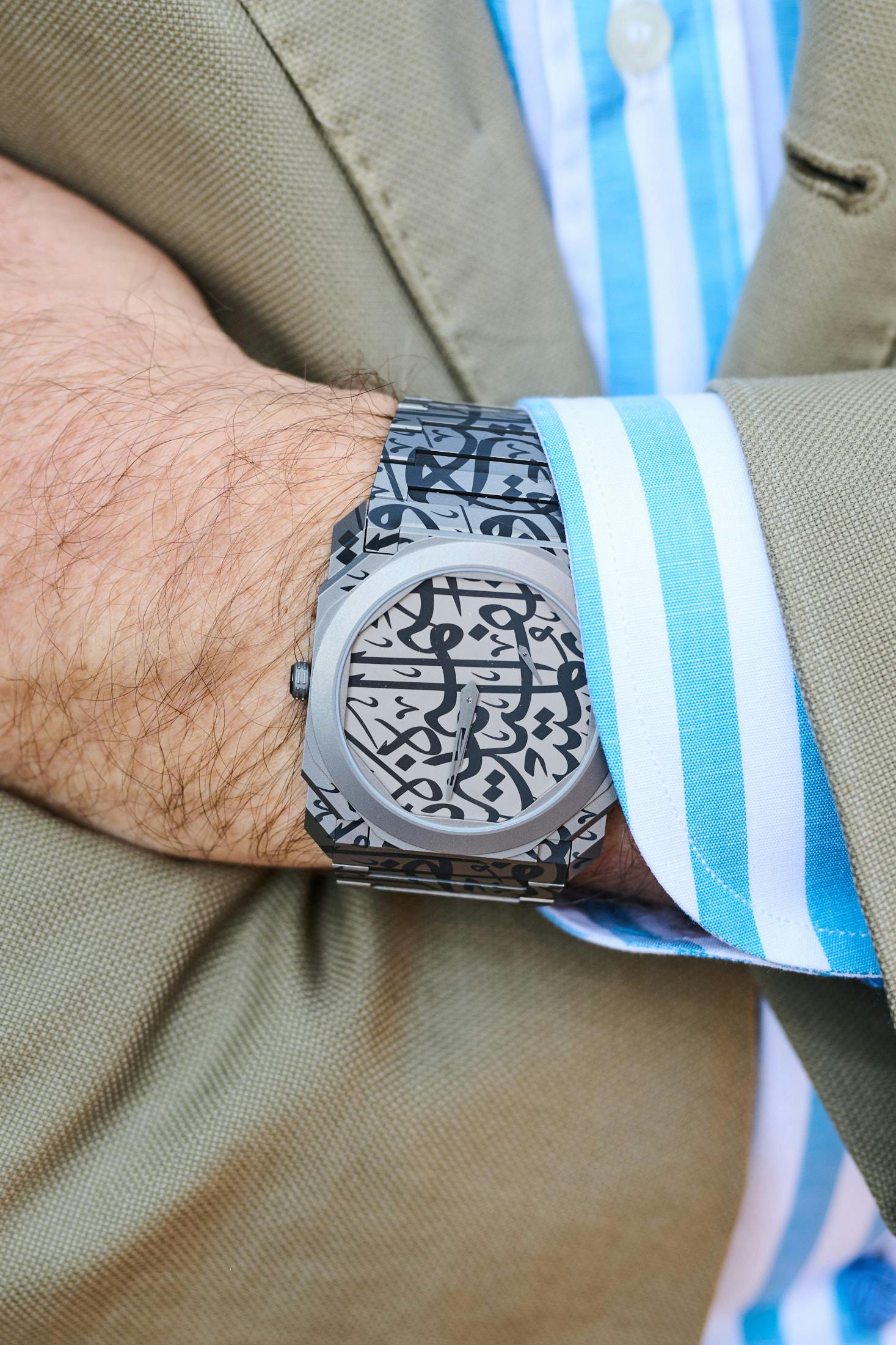 The Furlan Marri mechaquartz chronograph that was released shortly after with CLÉ: The Gallery in Saudi Arabia, worn by Andrea Furlan.
