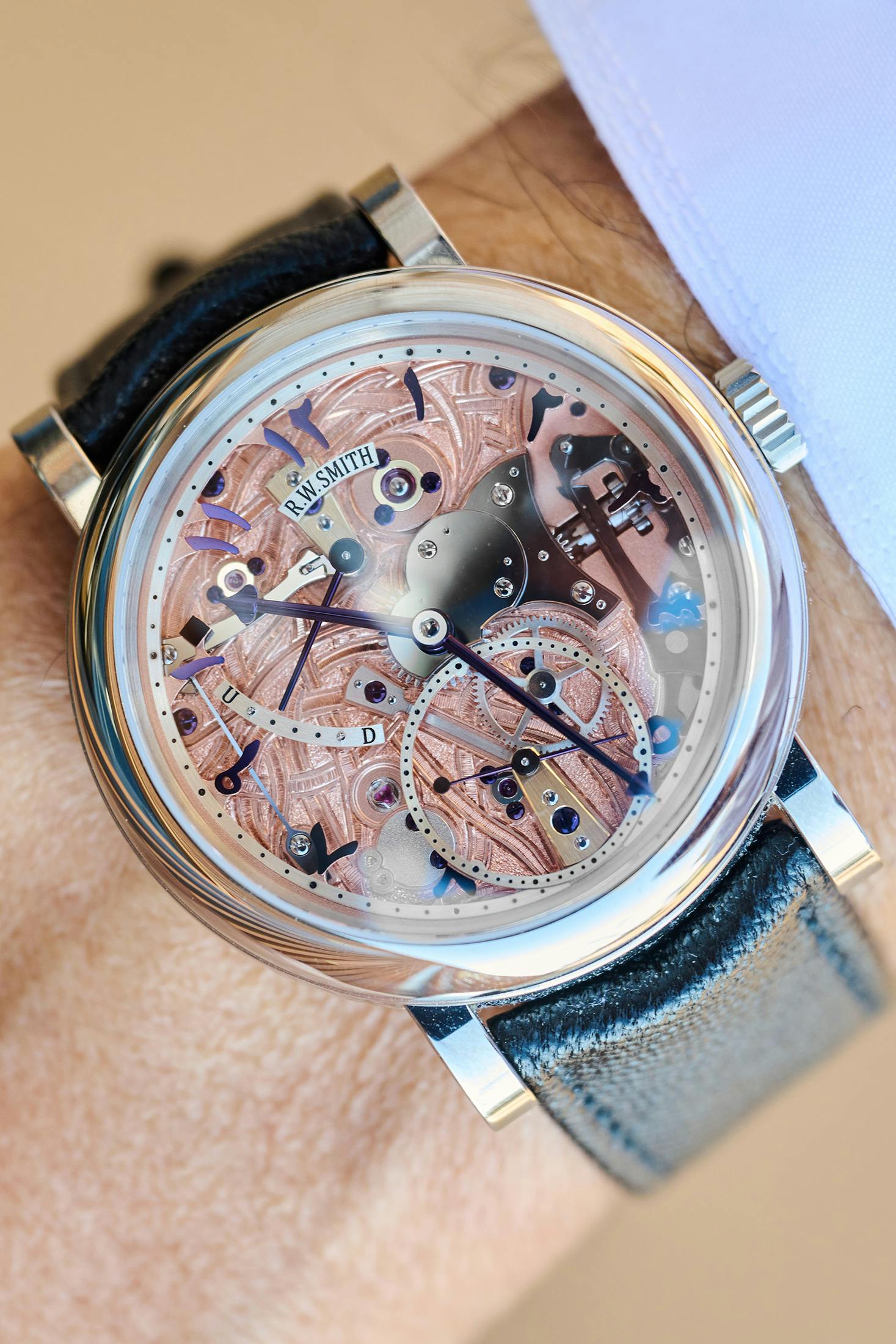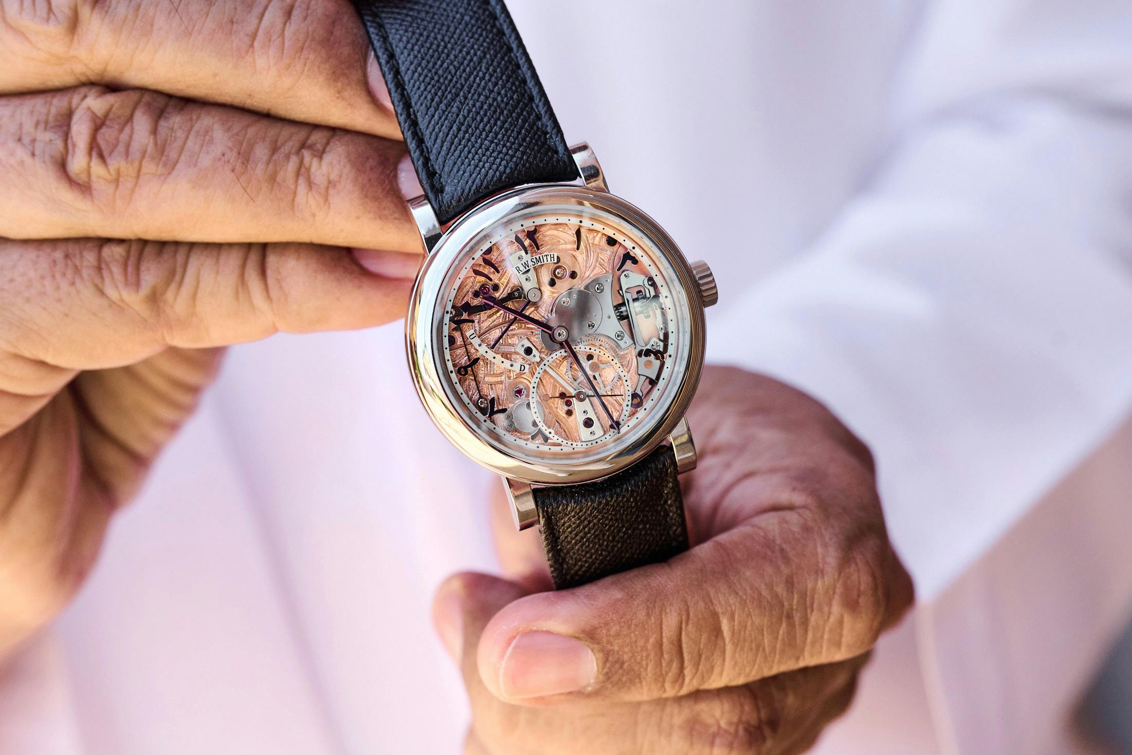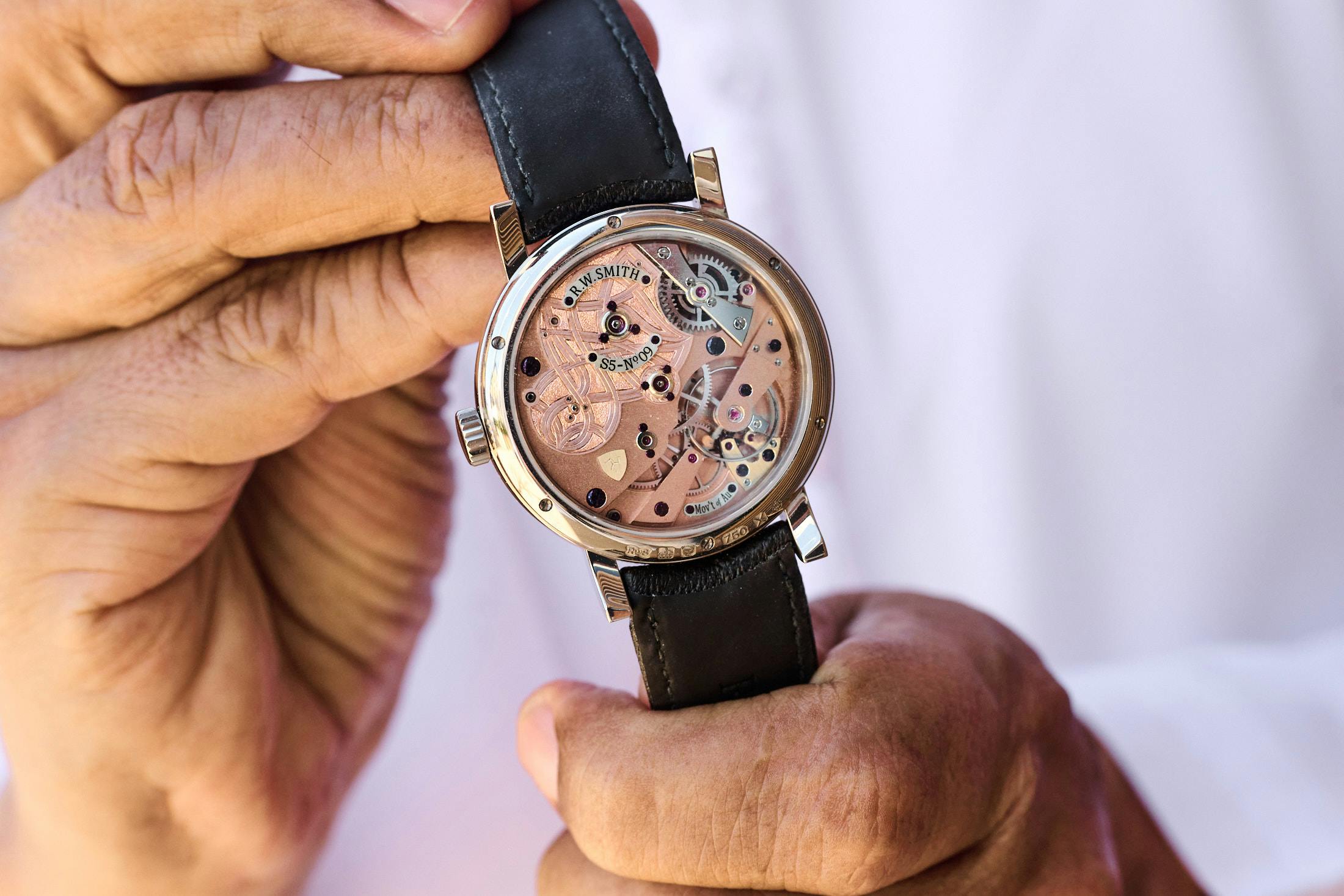 One of the first things that happened was that Chairman of Seddiqi Holdings, Hamied Seddiqi, stopped me yet again to share a unique watch, this time a Roger Smith Series 2 with Eastern Arabic Numerals and Arabesque engraving on the movement.