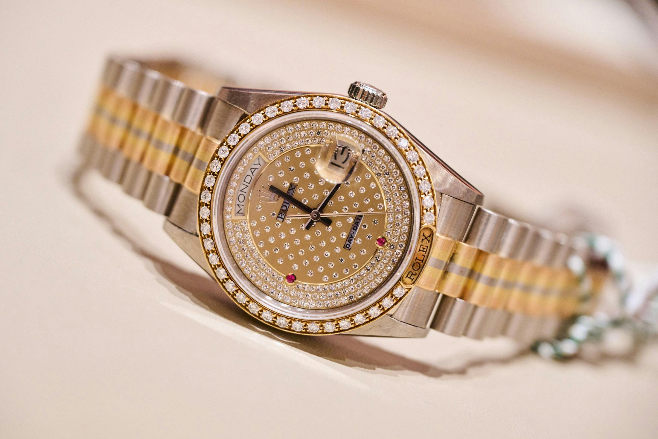 An off-catalog 40mm Day Date has rubies on the bezel and for the Roman numerals, and it’s still in production.