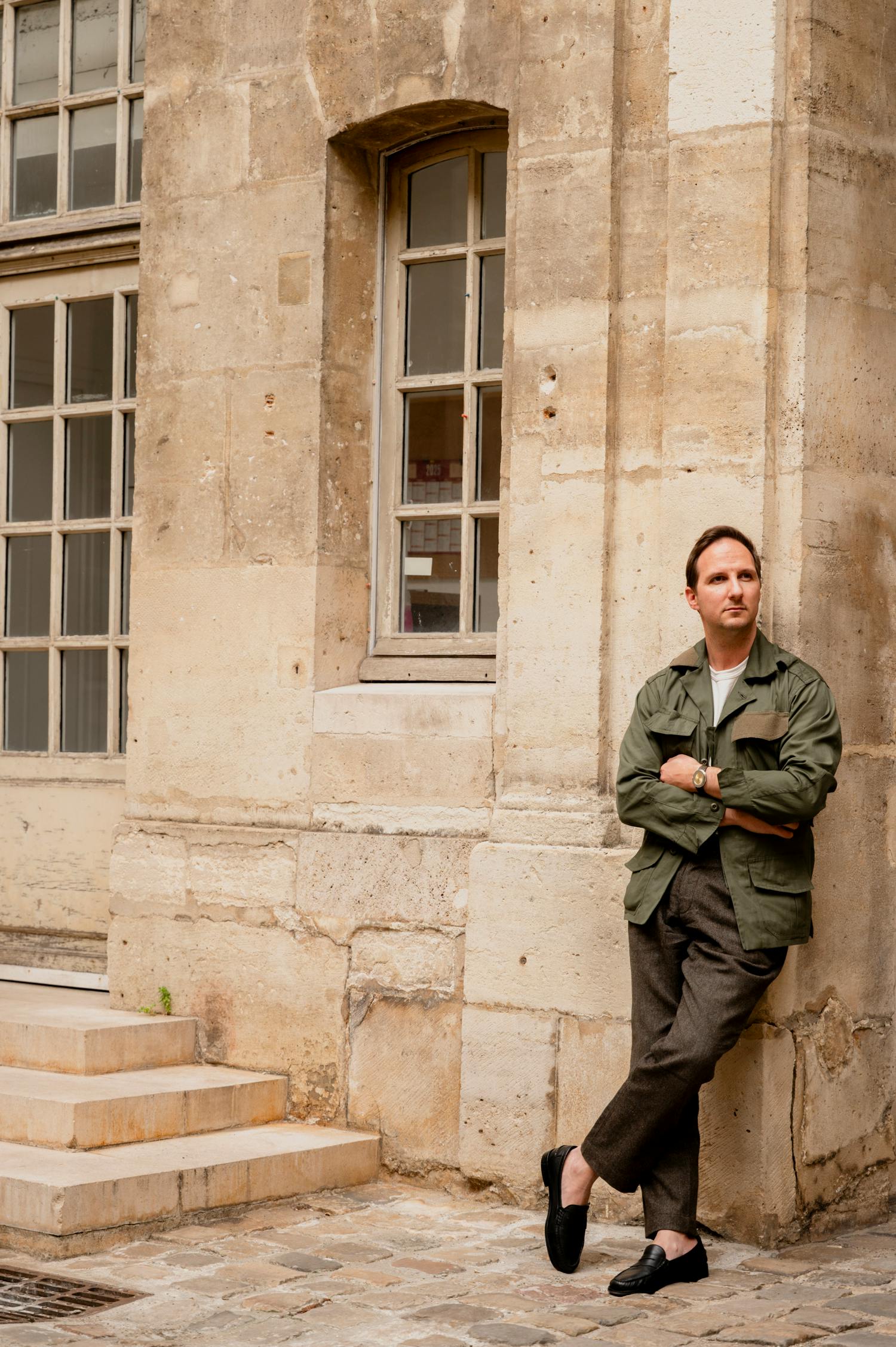Whether it’s vintage Pavé Piaget or new and hard-worn Cartiers, the tank format rolls unprotested across both banks. On the Rive Gauche, synonymous with Paris’s elite, new French brand Serica takes on nuance and ruggedness while some of the locals (Painter Nicolas Lefebvre, for one) make a strong statement going watch-less.