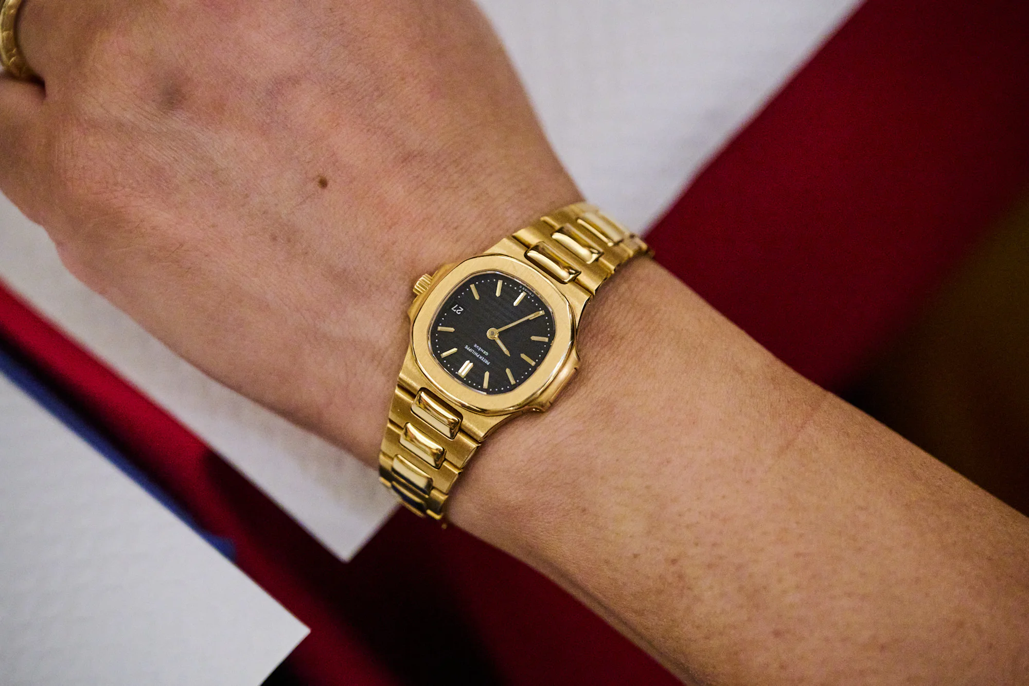 A beautiful Patek Nautilus ref. 4700J worn by the wife of Momentum’s Tariq Malik.