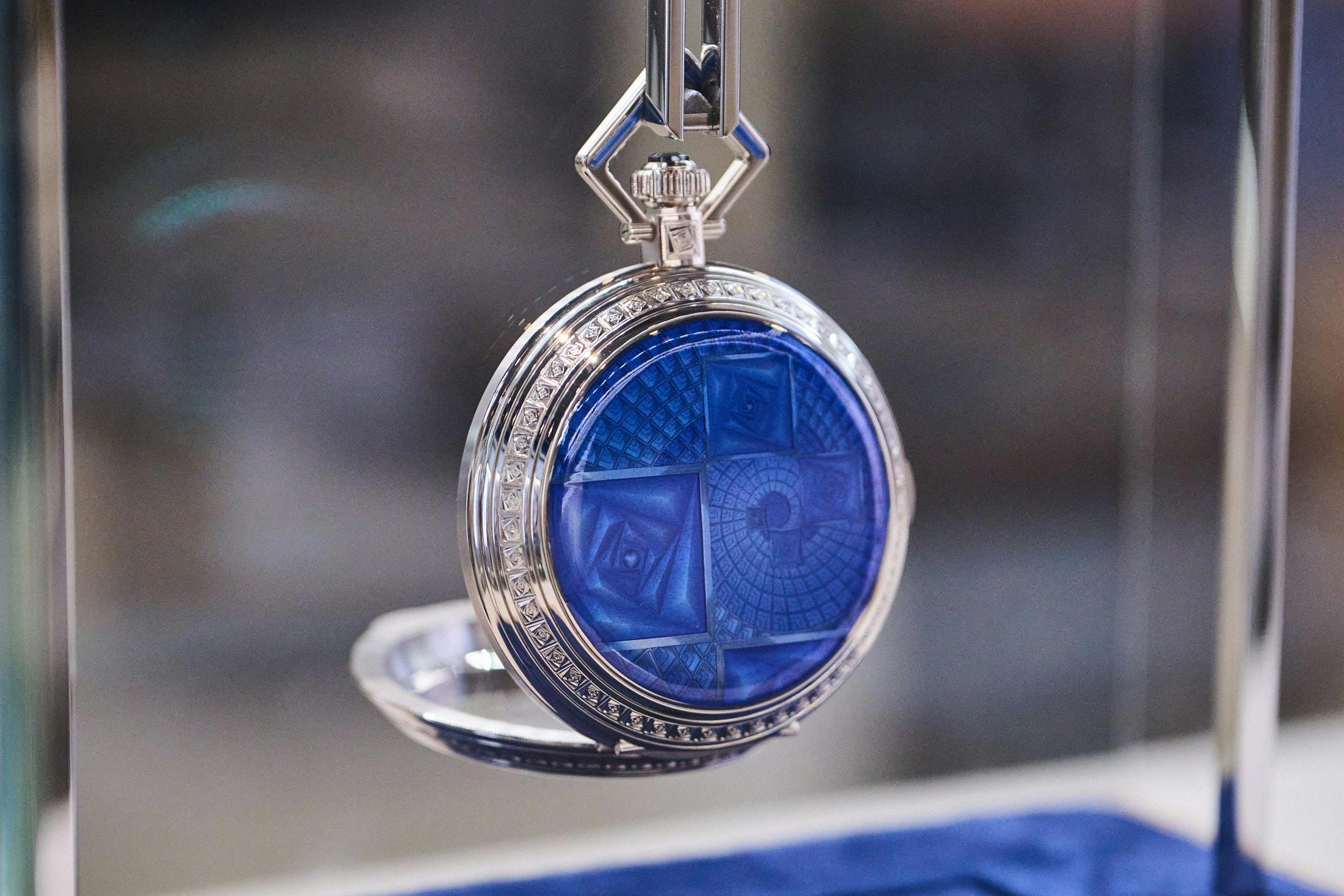 Parmigiani Fleurier’s booth also had the beautiful pocket watch La Rose Carrée on display.