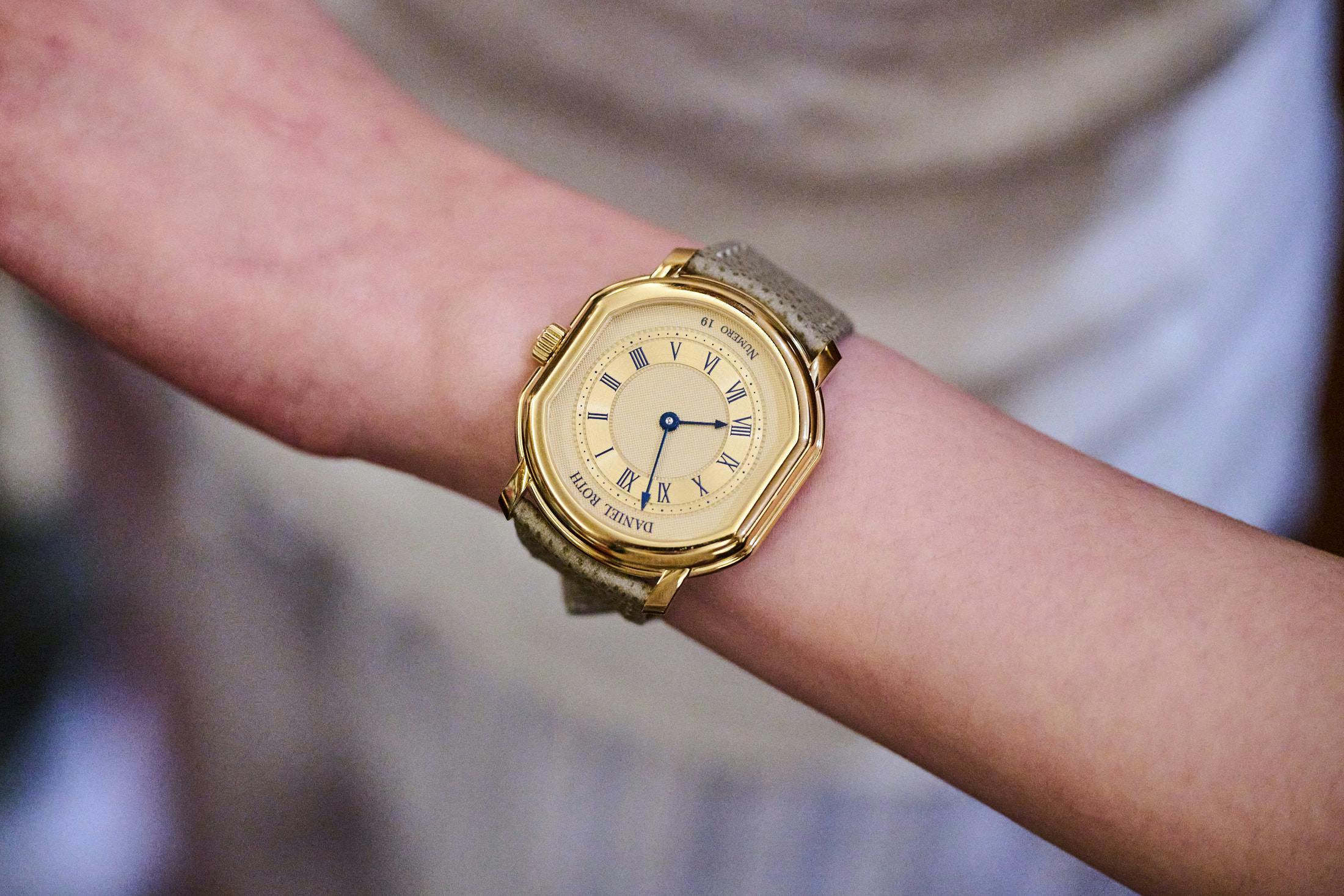 Speaking of independent watchmakers, here’s Rexhep Rexhepi wearing a prototype of his Chronomètre Contemporain II in rose gold.