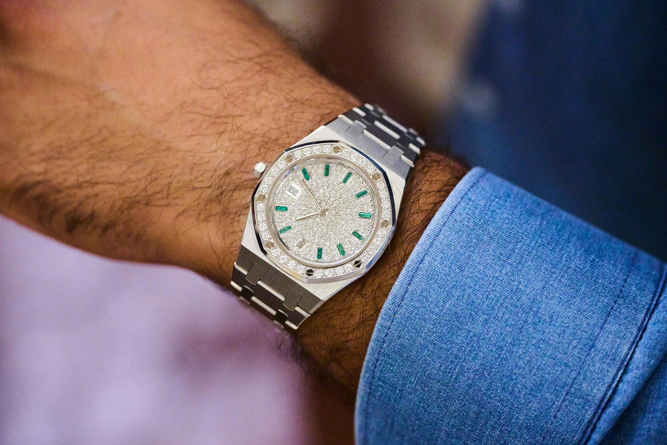 One of two known emerald-set ref. 14544 Royal Oaks, this one belonging to Collectors Gallery Dubai