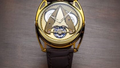 The organic design of this model combines Marc Newson’s signature style with Ressence’s oil-filled technology, powered by the patented ROCS (Ressence Orbital Convex System).