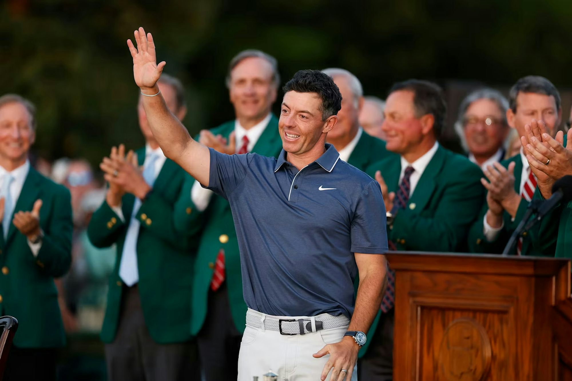 Omega Ambassador Rory McIlroy wears an Omega Silver Snoopy Award Speedmaster following his Masters victory in 2025 (via Getty Images).