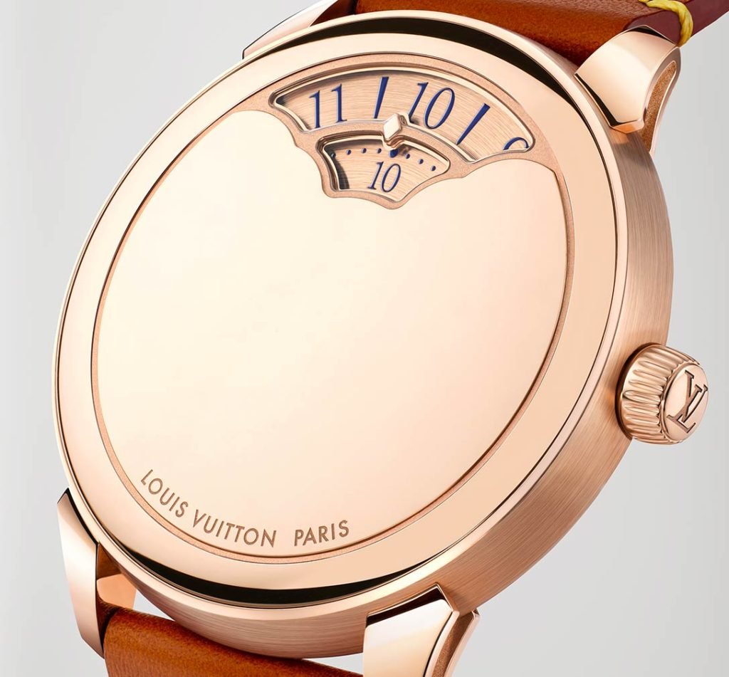 The gentle rotation of the delicately gold-plated or rhodium-plated discs of these displays is brought to life by the LFT MA01.01 caliber, a 4hz automatic movement manufactured by La Fabrique du Temps Louis Vuitton. Once fully wound by the ballet of its oscillating weight, it delivers a power reserve of up to 45 hours. This perfectly finished engine is housed in a 37mm diameter, 8mm thick case with a fluted crown, to which two strands of auburn or navy-colored calfskin leather are attached.