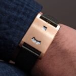 Conceptually, Urwerk is cut from similar cloth as MB&F, with a mission to make timekeeping machines for the wrist that are as far from traditional analog design as technically possible. Founded in 1997 by the visionary pair of watchmaker Felix Baumgartner and designer Martin Frei, Urwerk’s visual stock-in-trade is the use of orbiting satellites on a three-armed carousel to display the hour rather than hands, often in conjunction with an unconventional retrograde minutes indications along a scale. Urwerk has applied versions of this innovative timekeeping tech to various timepieces in a number of executions and materials — black PVD-coated platinum, gunmetal-toned titanium, and the yellow-gold, Star Wars-inspired UR-100 “C-3PO” edition, to name just a few.
