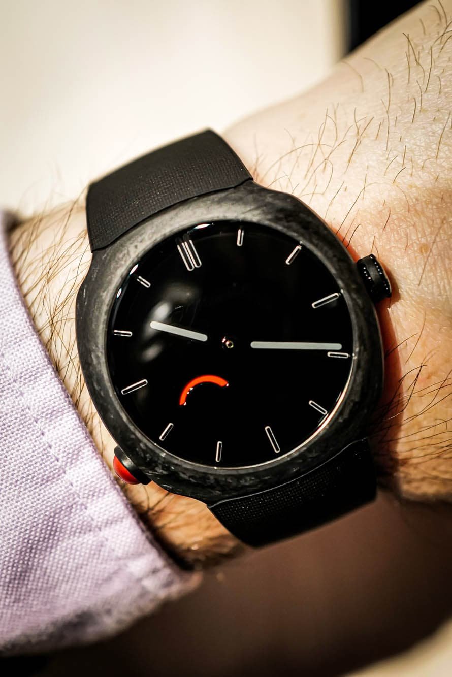 Handling the watch was a blast. I don’t think anyone who saw it at Watches & Wonders didn’t immediately go right to the pump to see what it felt like. It’s more tactile and mechanical than the sneaker, which is to be expected, but it’s a different kind of mechanical feedback than what you’d get from a chronograph. It doesn’t feel like a “pump” so much as a button that needs a little extra depression to activate.