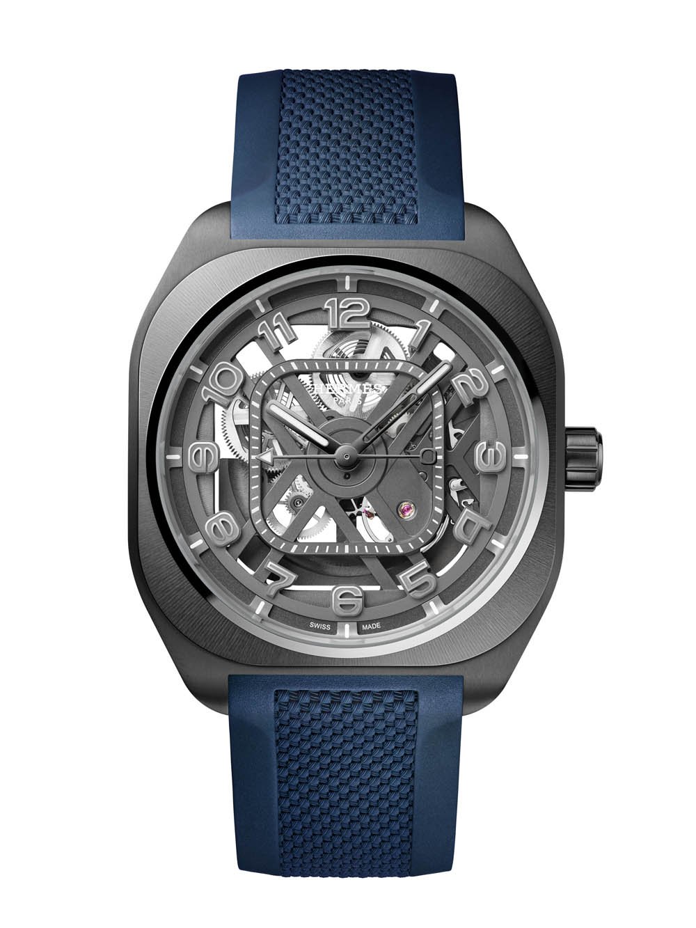 The skeletonized design of the new H08 Squelette models provides a view of the in-house movement: the manufacture caliber H1978S. This mechanical, self-winding movement offers basic hours, minutes, and central seconds as well as a power reserve of 60 hours. For more information, including pricing, you can head over directly to Hermes.