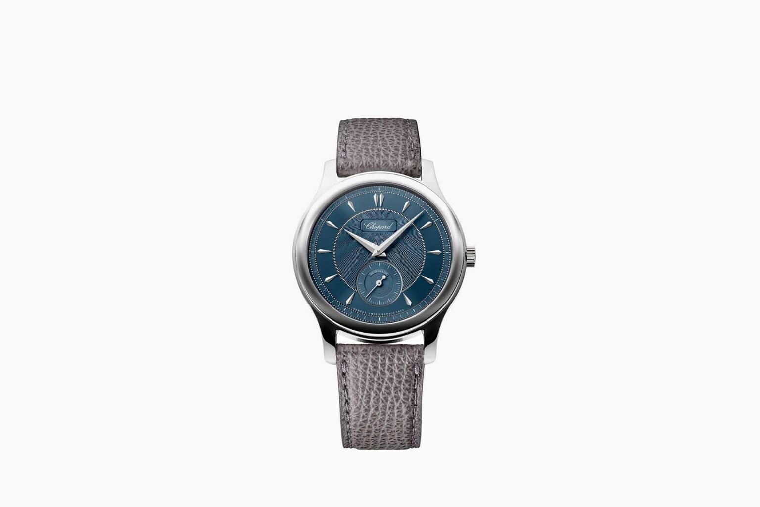 Where the first L.U.C. 1860 had a white dial with gold accents, this Chronometer wears a husky blue-gray tone known as “Areuse Blue.” It’s named after the river that flows through the Chopard manufacture in Fleurier, Switzerland; in a quirk of fate, the town of Fleurier is no longer on the map, having merged with neighboring towns into Val-de-Travers in 2009. But the manufacture is still there, about 120 kilometers northeast of Chopard’s Geneva headquarters.